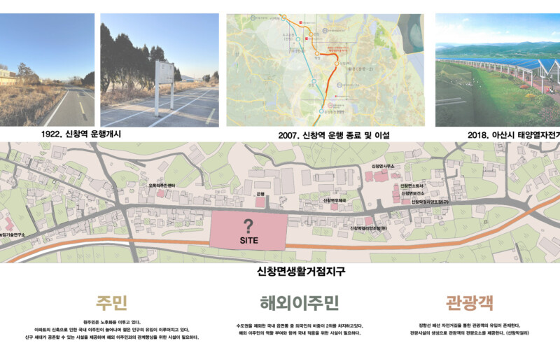 라는 생각에서 시작하여 신창역의 본연의 역할 그대로의 주민들의 생활에 도움을 줄 수 있는 시설을 설계하고자 한다.