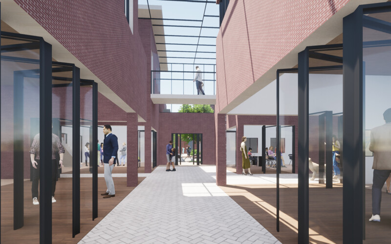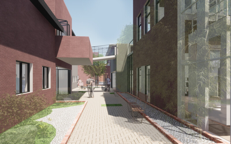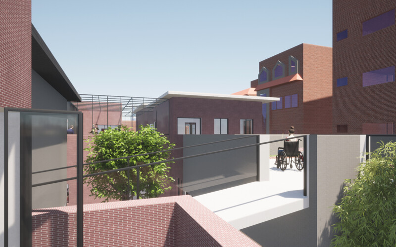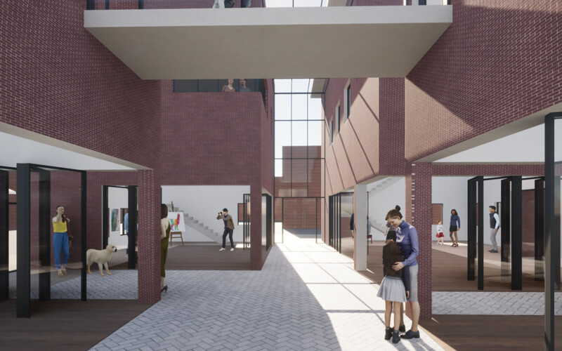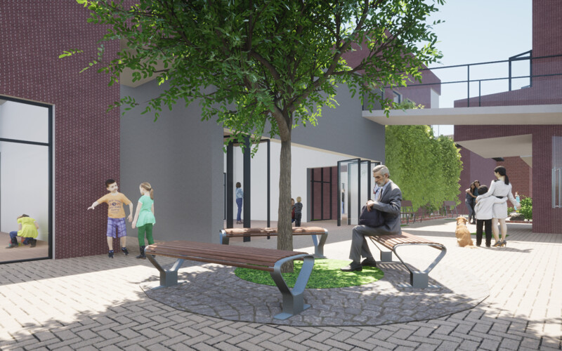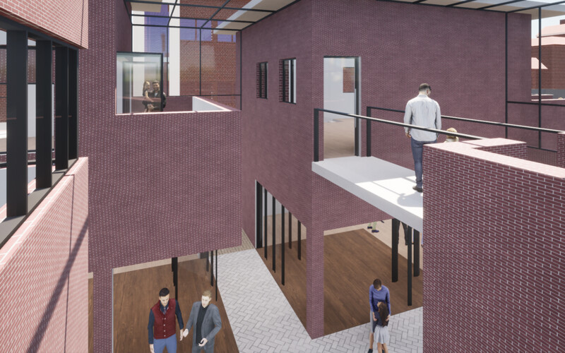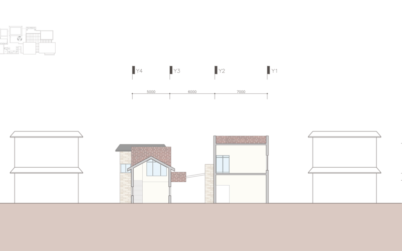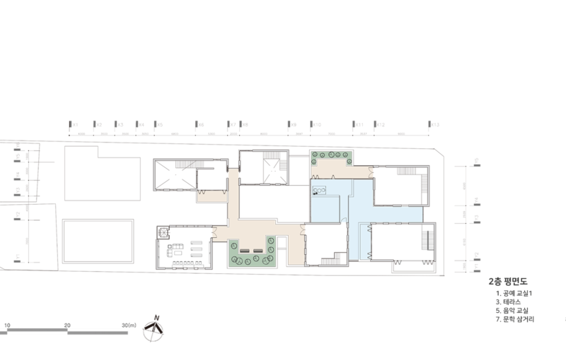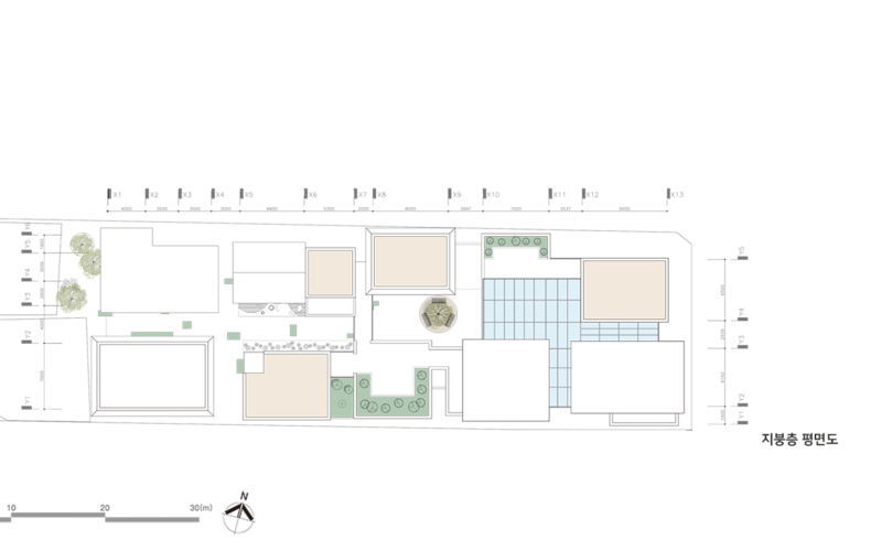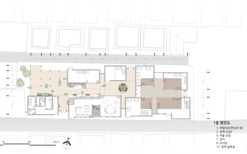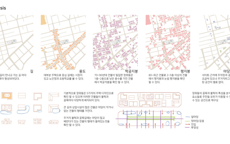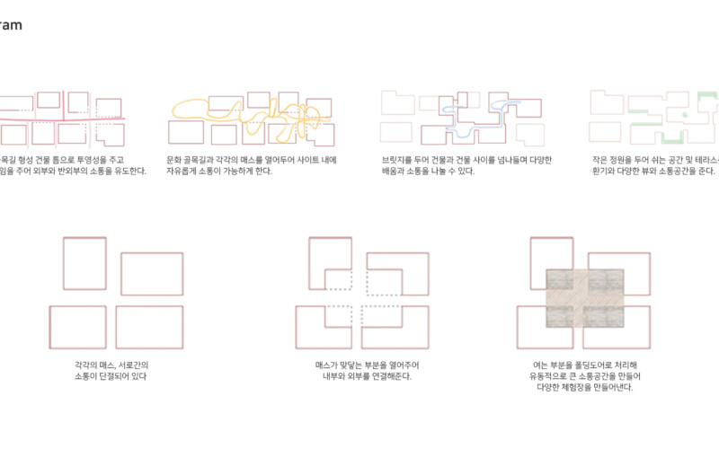 그곳은 주거지와 상업공간으로 이루어져 있지만 주민들의 소통이 단절되어 있다. 또한 골목길과 큰 길 각각 보이는 특징과 모습이 다르다. 이를 고려하여 상업지와 맞닿는 면의 입면은 상업지와 비슷한 리듬감을 가지고 주거지와 가까운 면은 마당을 내어주어 쉬는 공간을 내어준다. 주민들이 모여 휴식을 취하고 이야기도 나누고 다양한 여가를 배울 수 있는 문화 마을을 그려본다.