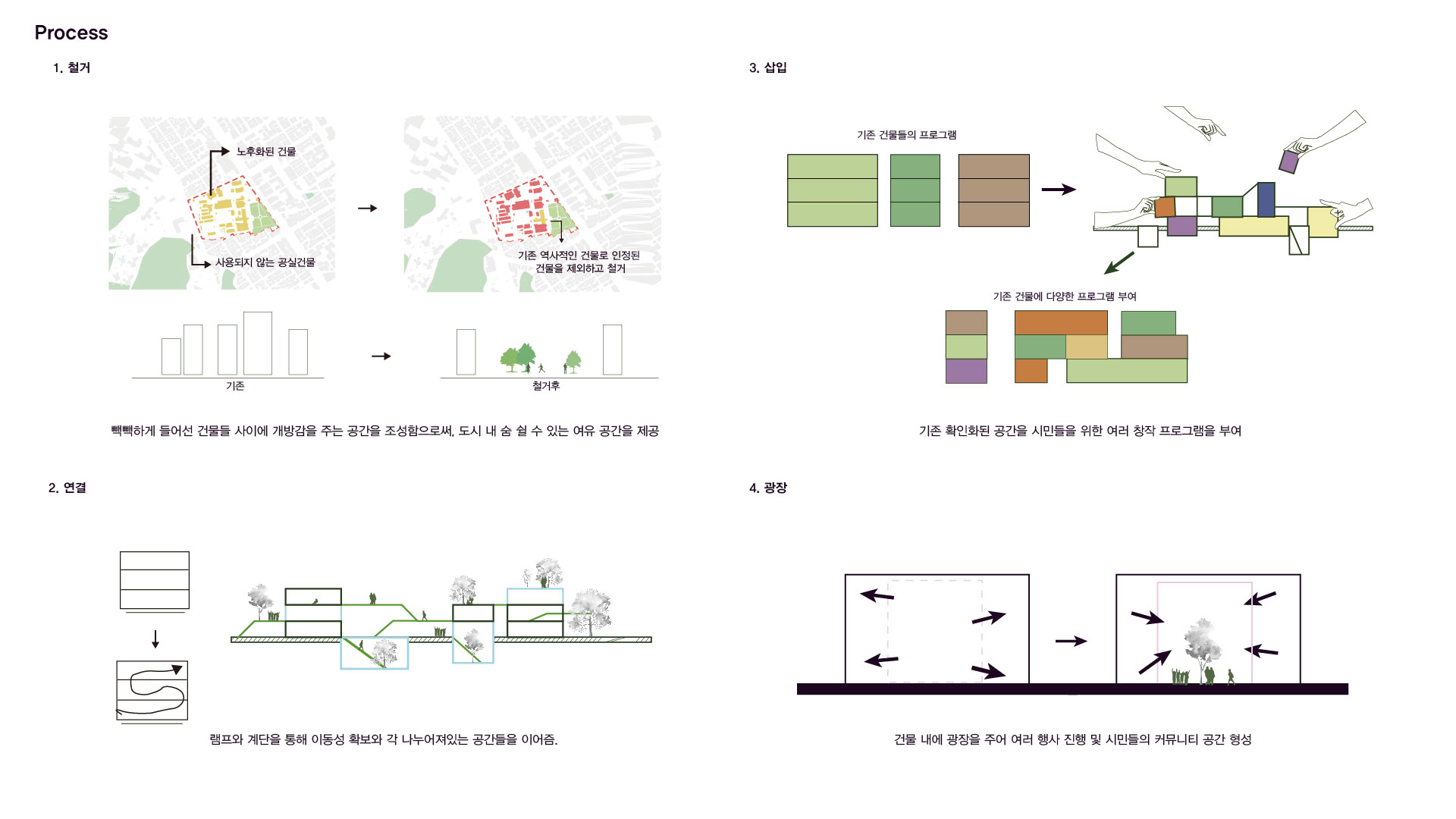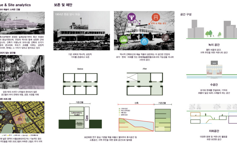 이 프로젝트는 단순히 건물을 재생하는 것이 아니라, 기억(본관 보존), 가능성(지하 문화공간), 자연(열린 녹지) 이라는 3가지 층위를 겹겹이 쌓아 올려, 지역의 역사성과 현대적 문화 요구를 동시에 충족시키는 새로운 도시적 플랫폼으로 자리매김한다. 특히, 안양 시민들이 잊혀졌던 공간을 다시 기억하고, 활용하며, 함께 누릴 수 있는 장소성을 제공한다는 점에서 큰 의미가 있다.