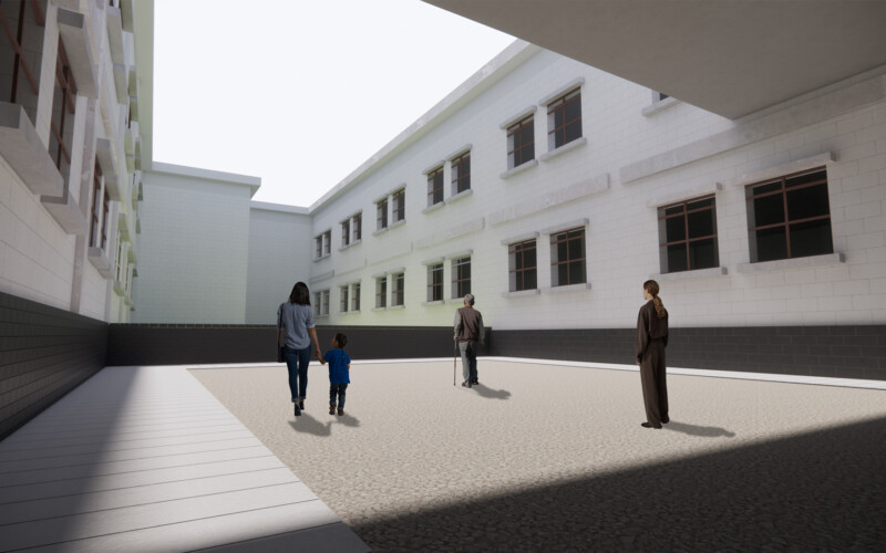 원래 건물은 그대로 보존하며 대신, 그 앞에 새로운 공간들을 조성하고자 한다.