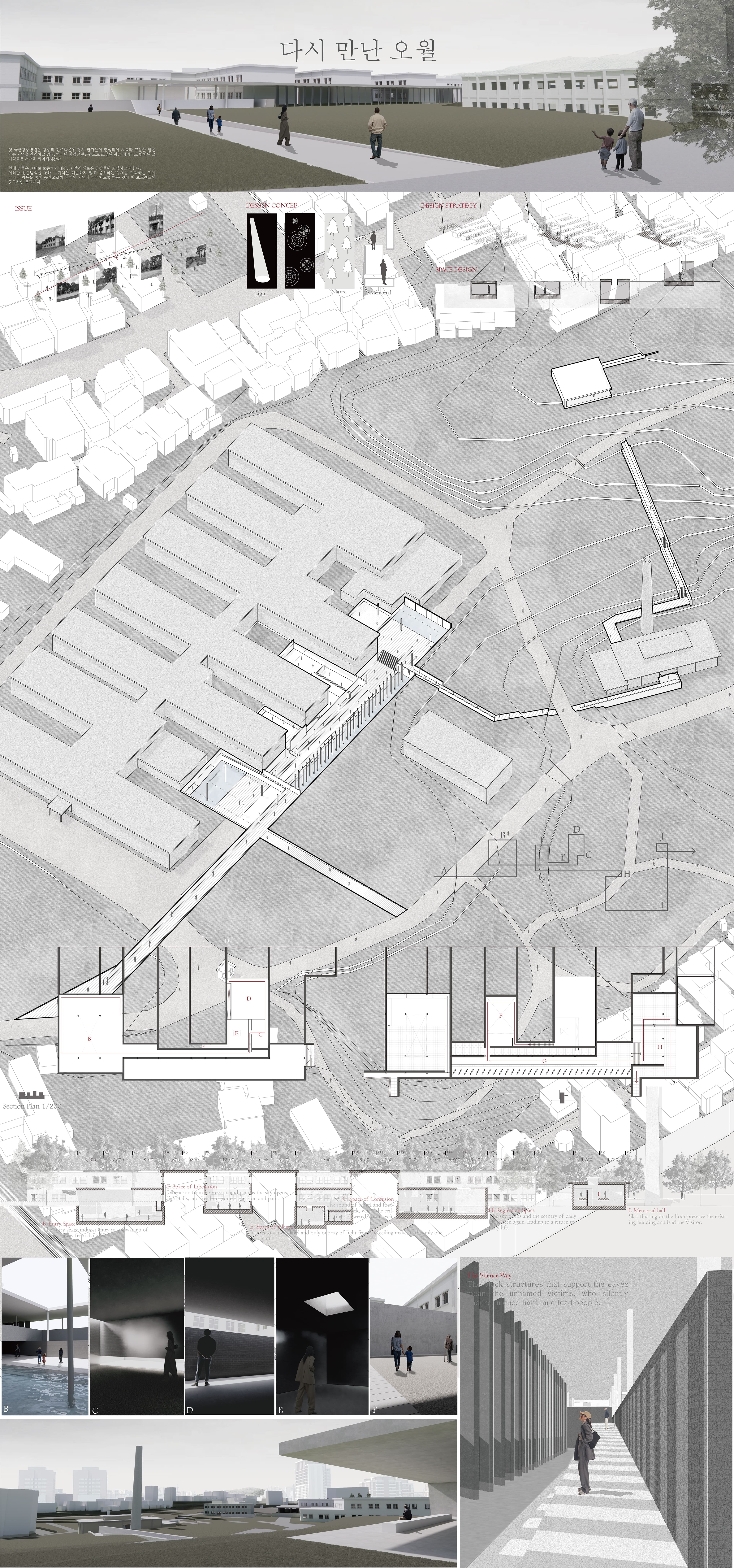 현재 사람들에게 잊혀져 방치되어가는 광주국군병원 옛 터의 흔적을 공간 시퀀스를 통해 보존하고 기억하며 치유받을 수 있는 공간으로 활용
