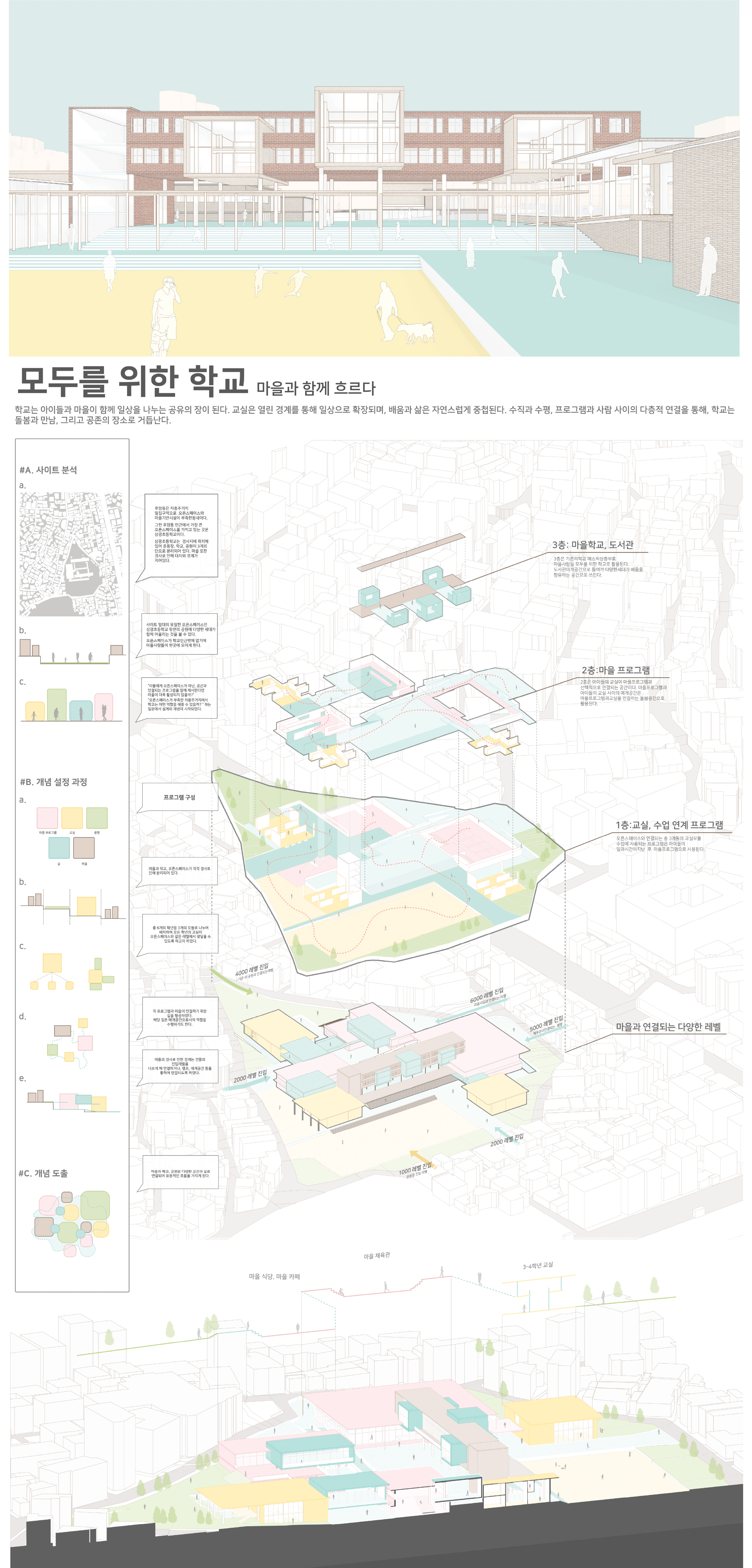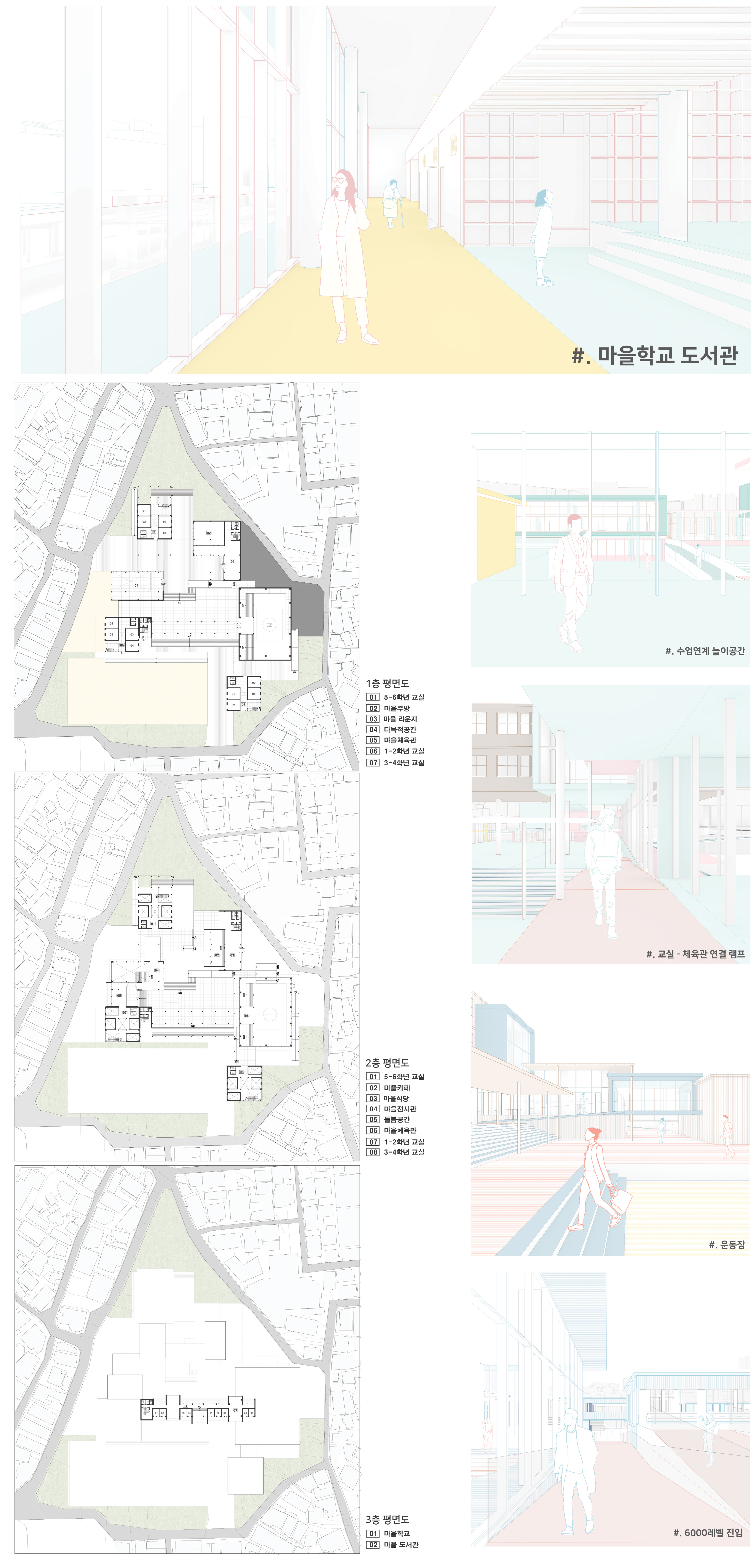 해당 설계를 통해 학교와 마을, 아이들과 어른이 함께 모여 다양한 일상이 흐르는 장소가 되길 바라고 또 기대한다.