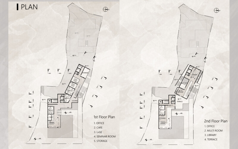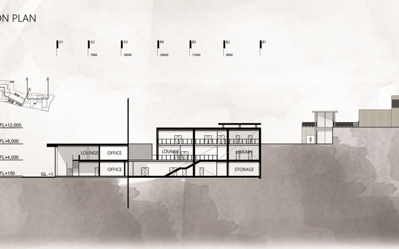 경사의 흐름을 따라 배치된 공간들과 빛으로 비춰지는 모습들이 인상적입니다.