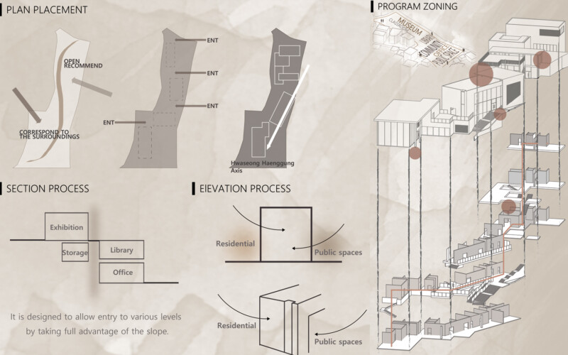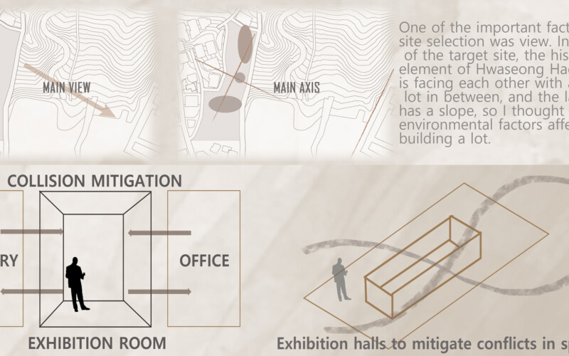 수원이 가지고 있는 랜드마크 수원 화성 행궁을 중심으로 주변에 위치한 문화시설들과 더불어 문학관이 함께 문화 집결지를 이루어 수원의 문화중심지를 형성하고자 하는 목표로 계획한 문학관이다. 나혜석의 생애가 담겨있는 이곳에 수원의 대표적인 화가인 나혜석 문학관을 설립하여 나혜석이 가지는 정체성과 생애가 전시관을 통해 이용객들에게 전해지기를 바랬다. 더불어 화성 행궁과 나란히 배치된 건물 속에서 이용객들이 다양한 문화생활을 즐길 수 있게끔 설계하였다. 이 프로젝트는 역동적인 수변 체험과 문화적 정체성을 제공하여 지역내의 지속가능한 인프라로 자리잡기 위한 설계로 화성 행궁과의 적극적인 소통을 바랬던 프로젝트이다.