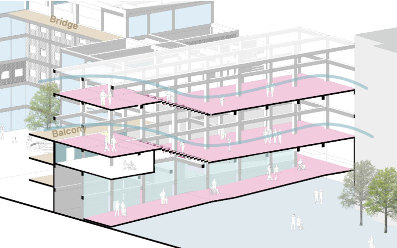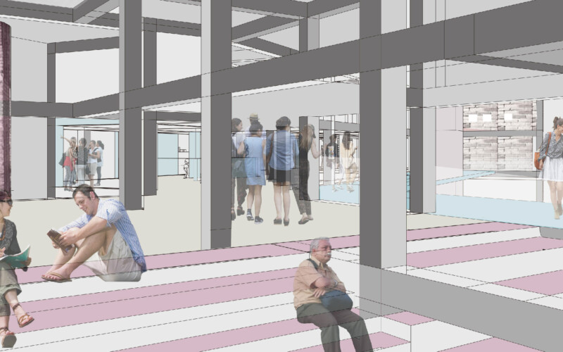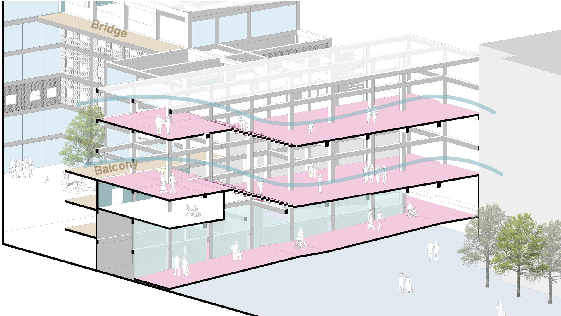 또한, 외부공간으로 통해 이용객들이 다양한 동선으로 진입할 수 있고 이 출입공간은 이벤트공간으로 활용하기 위해 출입구쪽의 외부공간은 구조체를 제거하였다. 이런 모듈의 타입의 조합을 통해 성수동 팝업스토어의 임시공간과 성수공업고등학교의 정체성을 살린 형태를 제안한다.