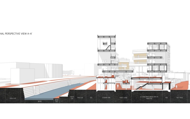 기존조직을 존중하며 현대적으로 재해석한 시장아파트