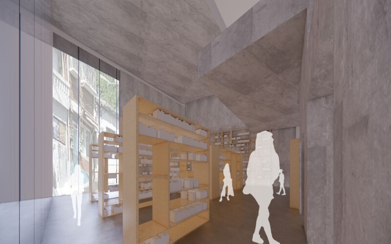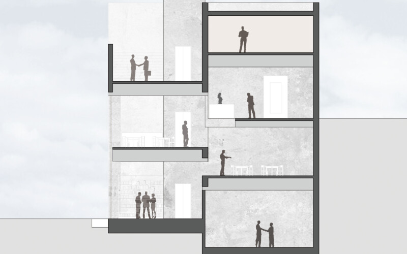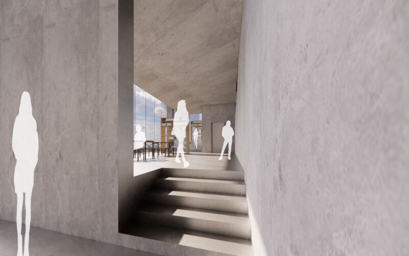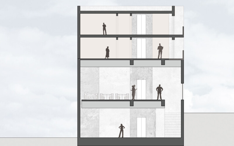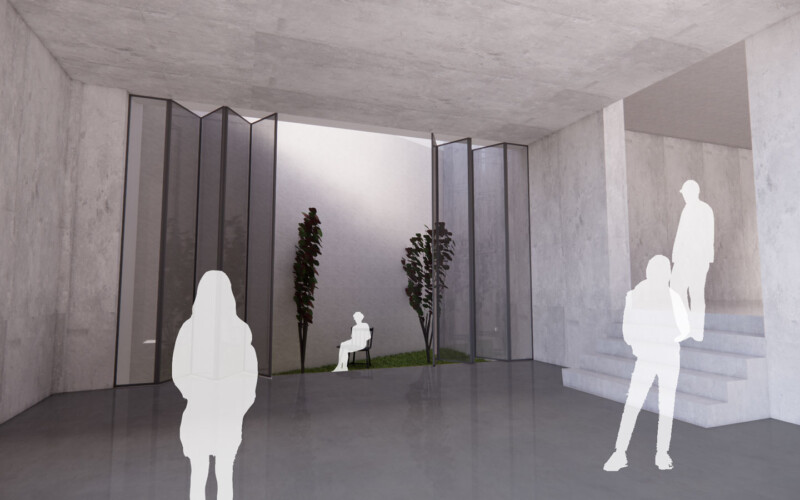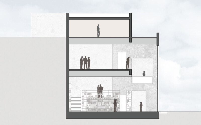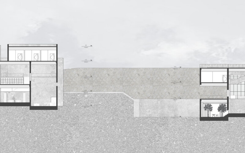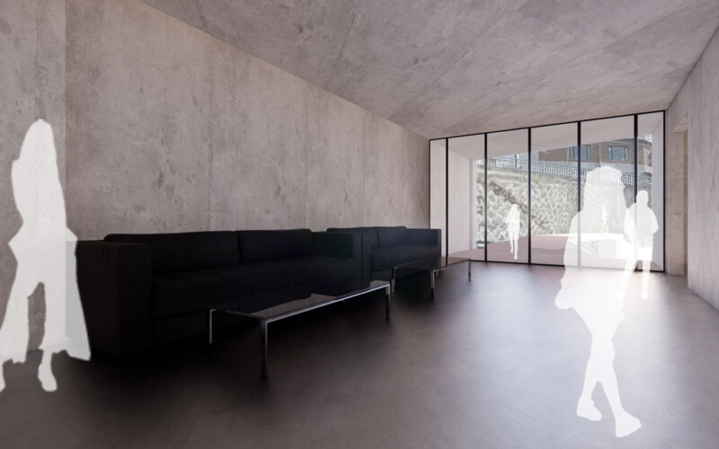 또한 기존의 석축을 강조시키는 만큼 건물의 입면이 석축을 보조하는 프레임의 역할을 하면서 자연스럽게 녹아들기를 원하였기 때문에 하나의 석축의 연장선이라고 생각하여 입면의 역할을 기존의 석축과 같은 재질을 사용하였다.