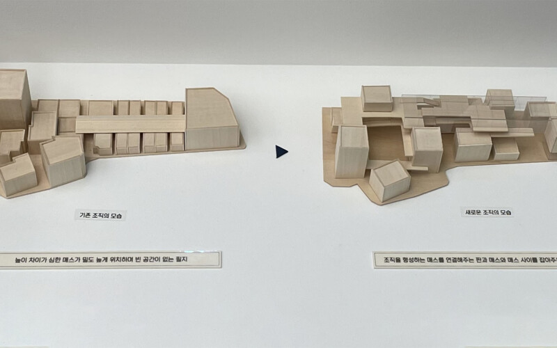 기존에 있던 매스들의 라인을 따라 재조직화된 매스는 독립적인 기능을 하고,