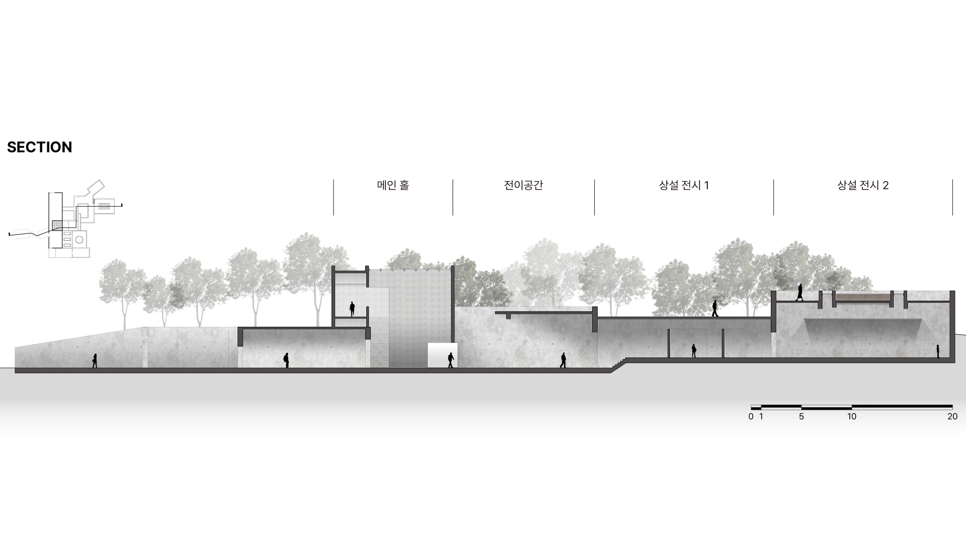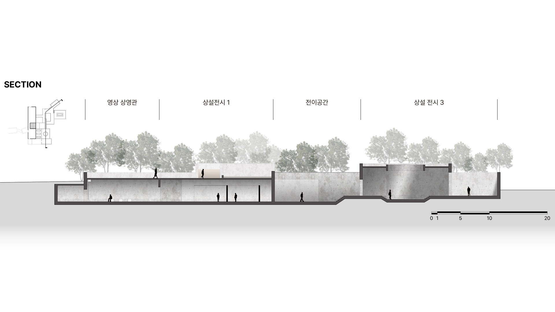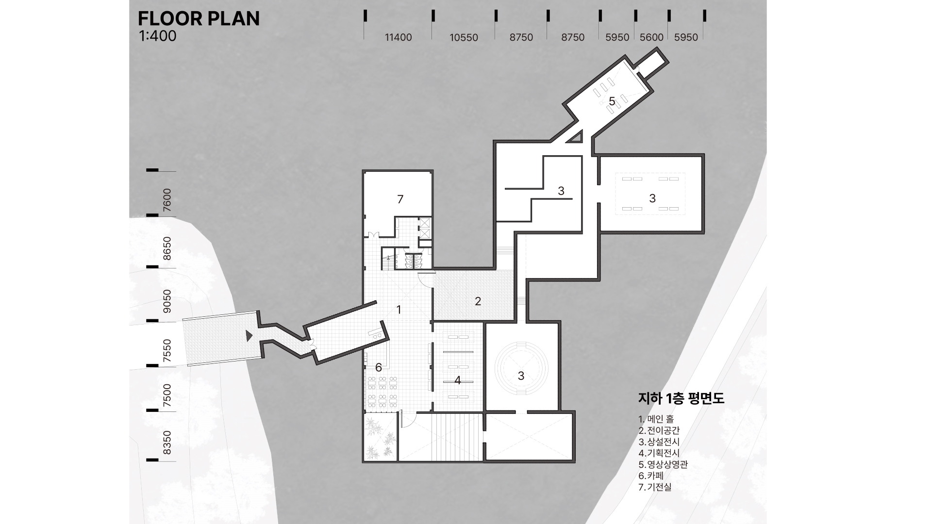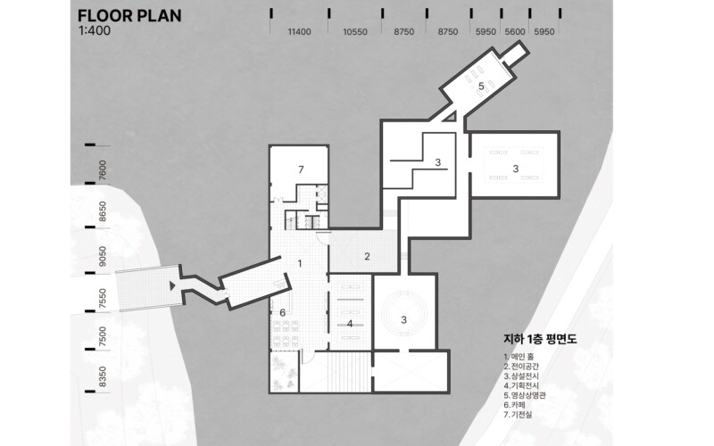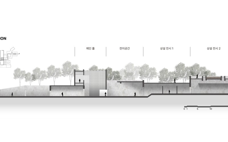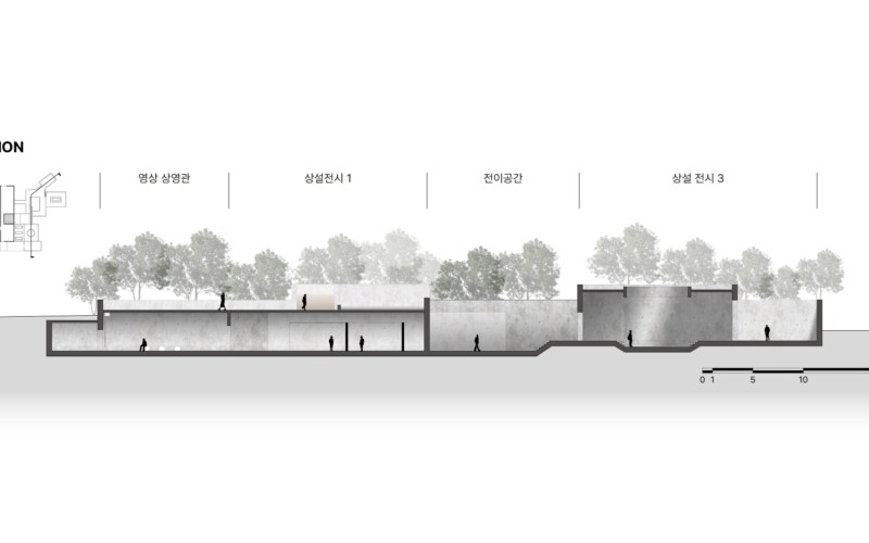 성토되어 있던 흙을 걷어내면서 땅 속에 반만 묻혀 있는 벙커의 단면적 위치는 전쟁으로 삶과 죽음의 경계에 있던 당시의 상황을 단면적인 위치와 공간의 감정적인 느낌으로 나타내는 프로젝트이다.