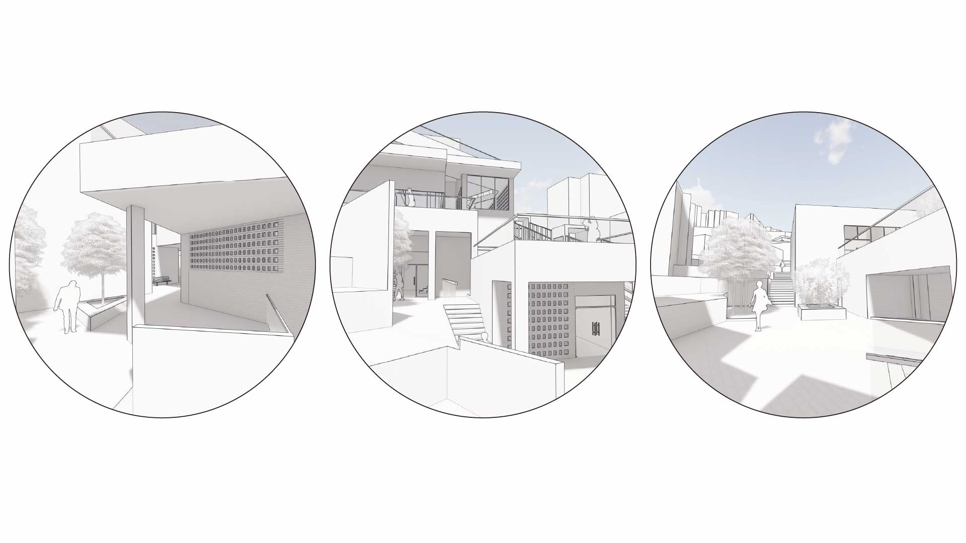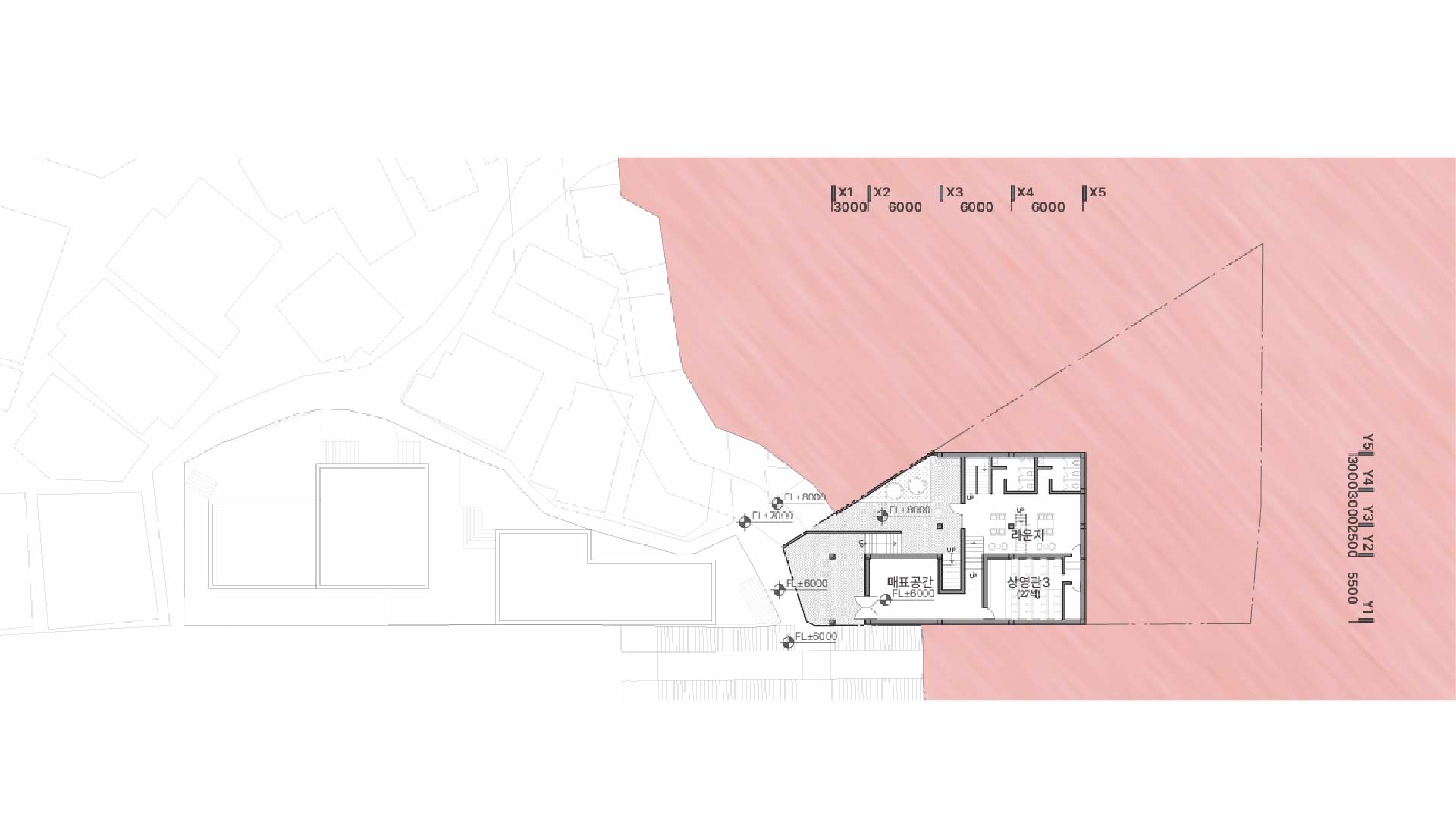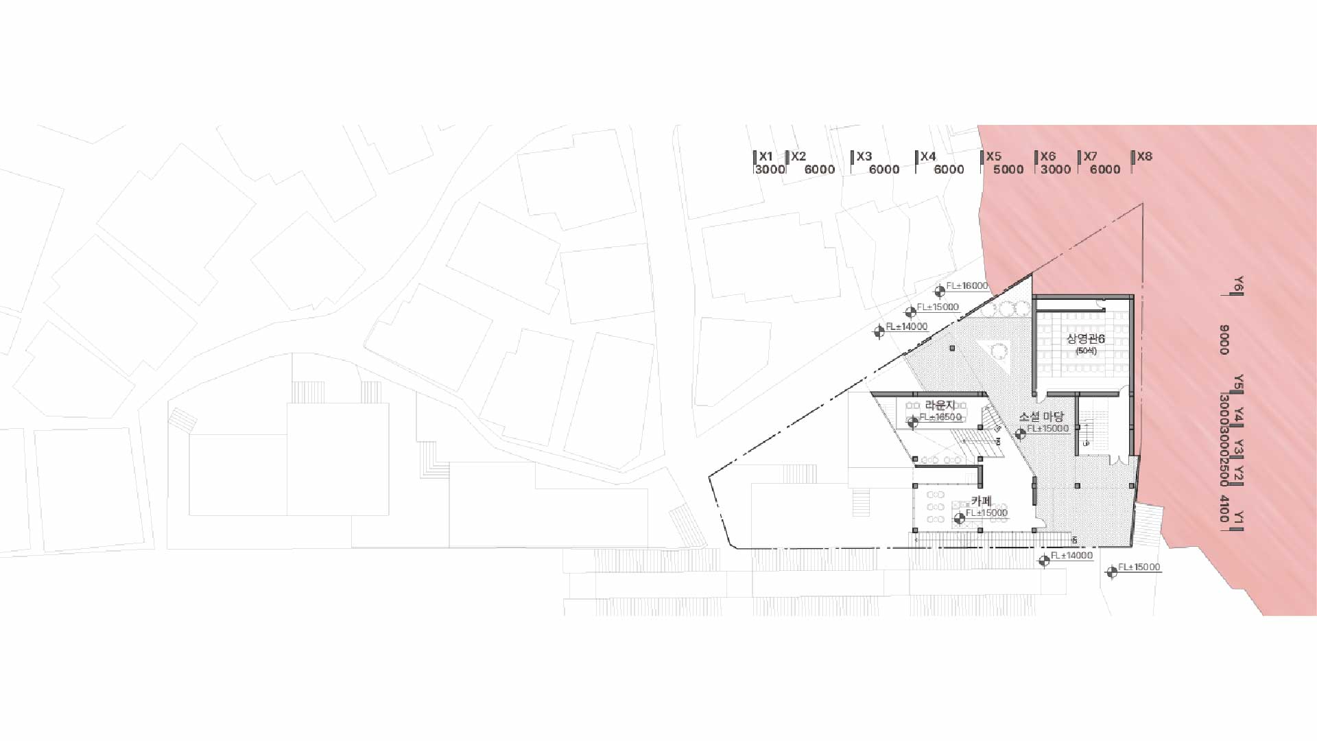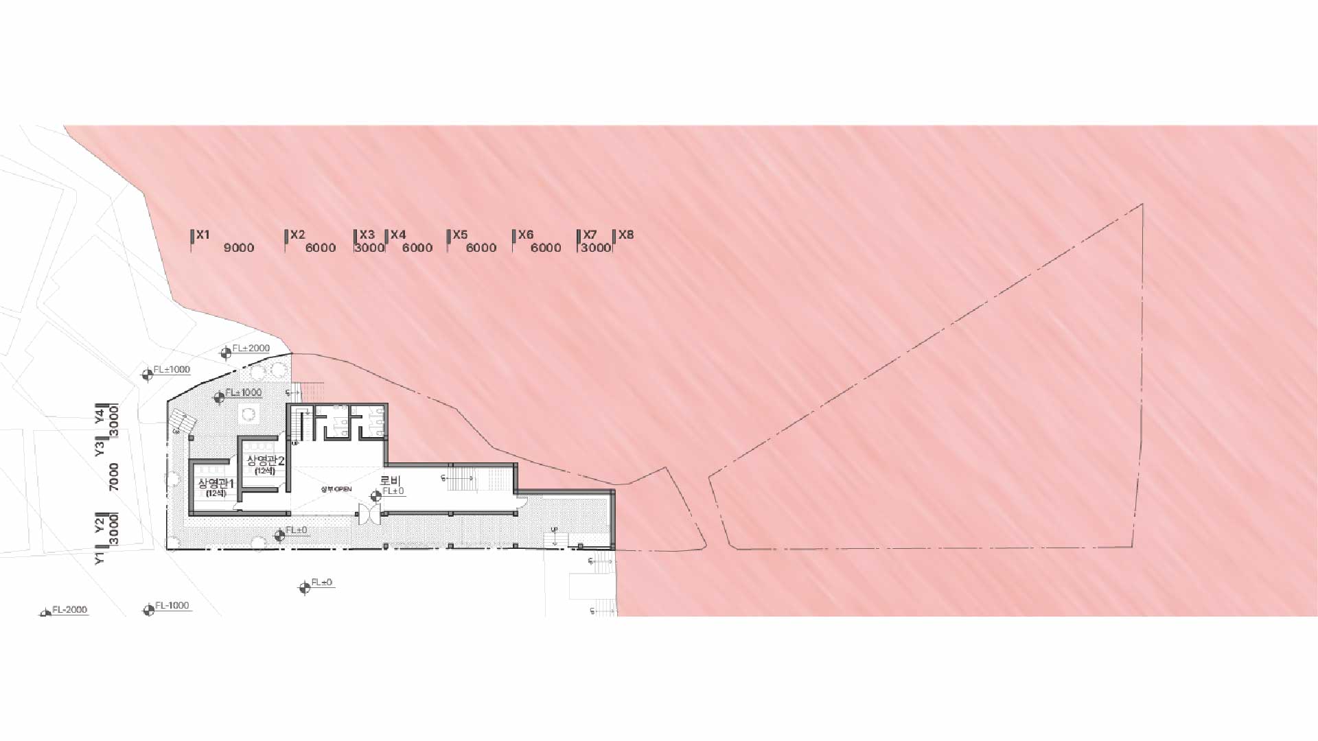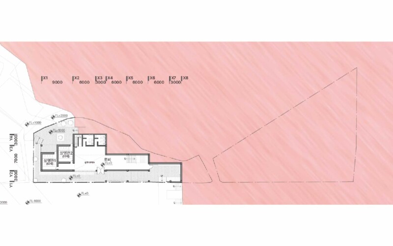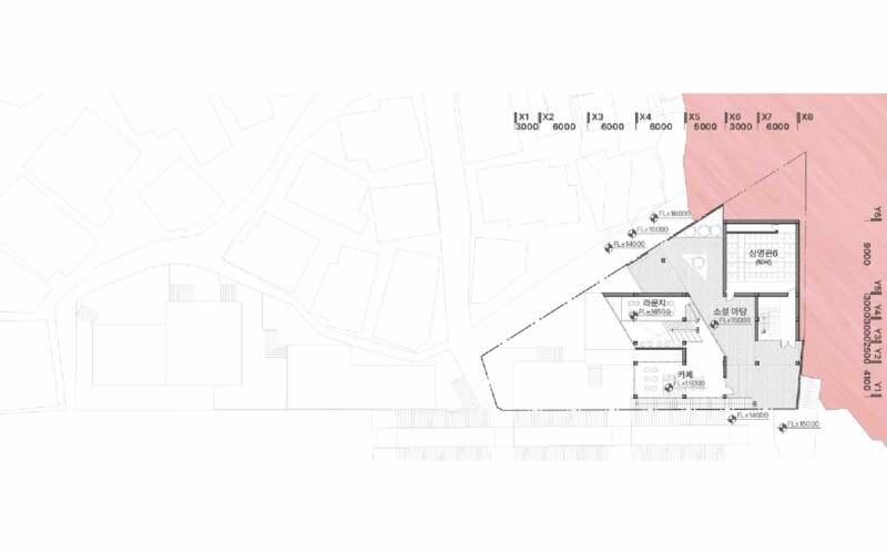 길과 맞닿아 있는 외부 공유 마당은 누구나 자연스럽게 진입할 수 있도록 설계하여 지나가는 길에서 머무는 공간으로 형성하고자 하였습니다. 이를 통해 공간의 위계가 아닌 흐름이 중심이 되도록 유도하며, 관객은 단순히 영화를 보고 나오는 것이 아니라, 그 이후의 활동까지 자연스럽게 이어가게 됩니다.