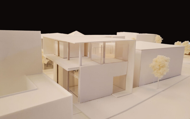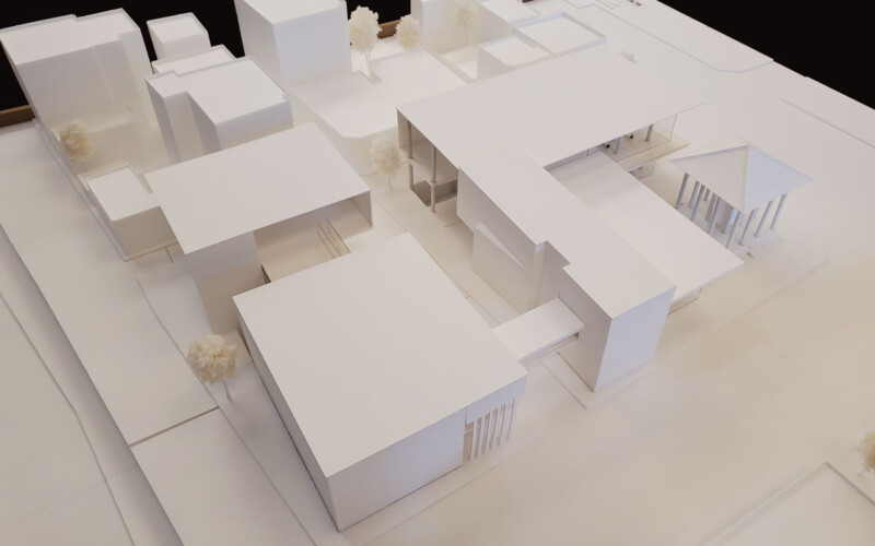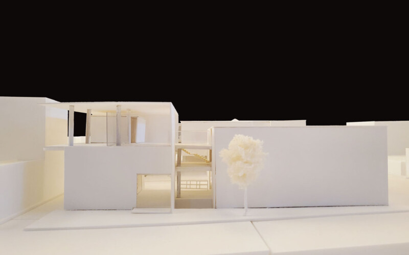 건물은 두 동으로 분리되어 있고 북쪽에 이를 연결하는 연결다리가 있다. 북쪽에서 바라보면 연결다리와 두 동의 입면이 연결되어 하나의 면처럼 보인다. 이는 입구처럼 보이고 그 사이로 들어가면 야외골목길이 드러난다.