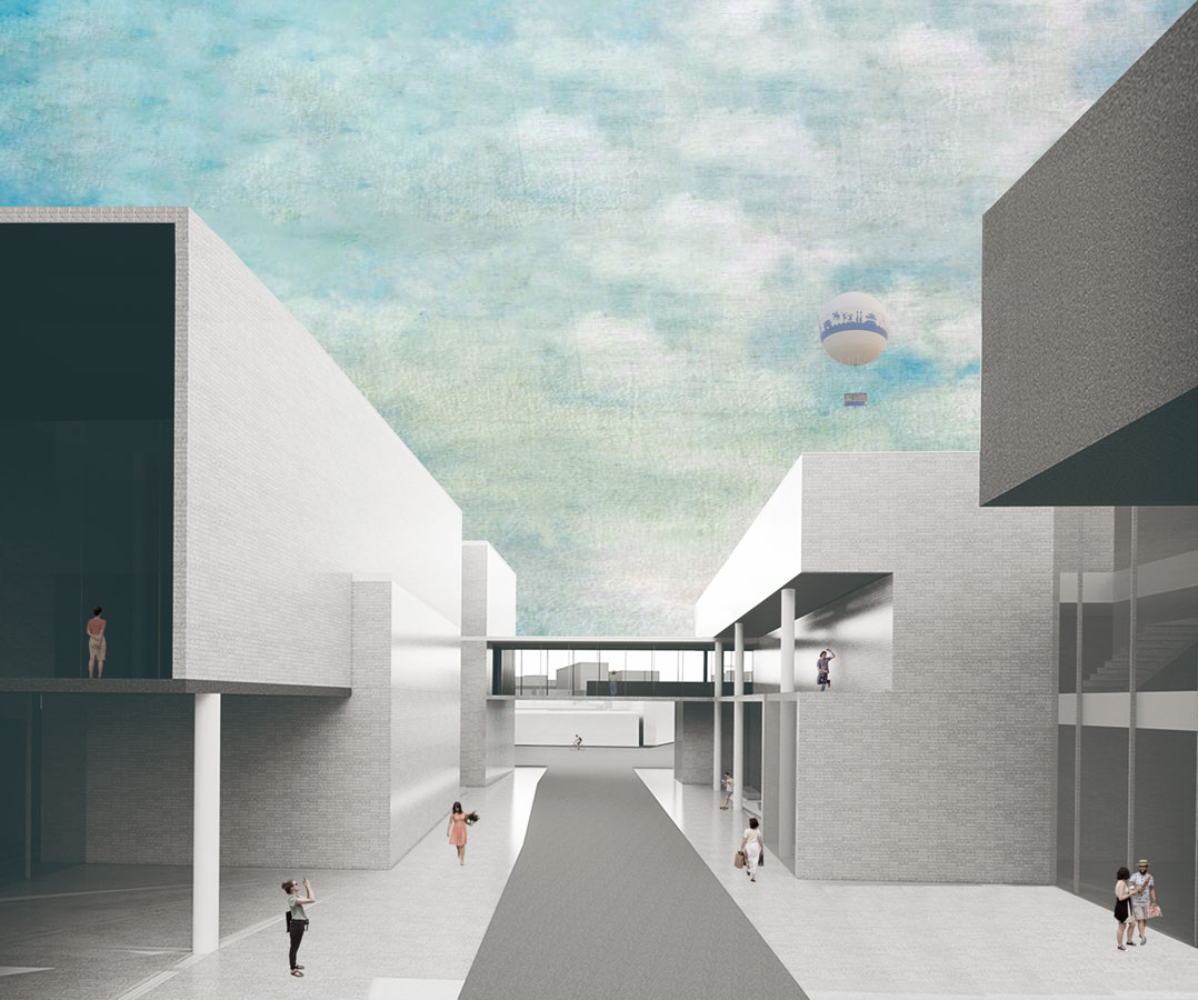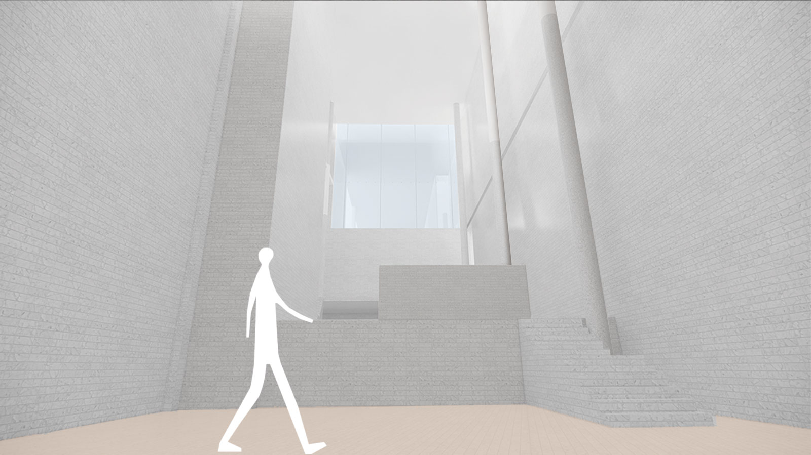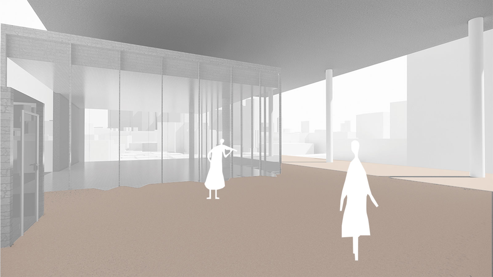 그저 지나가는 골목길이 아닌 하나의 공간으로 인식하고 넓은 마당을 통해 머무르게 하고, 건물 내부로 통하는 입구를 두어 동선을 유도한다.