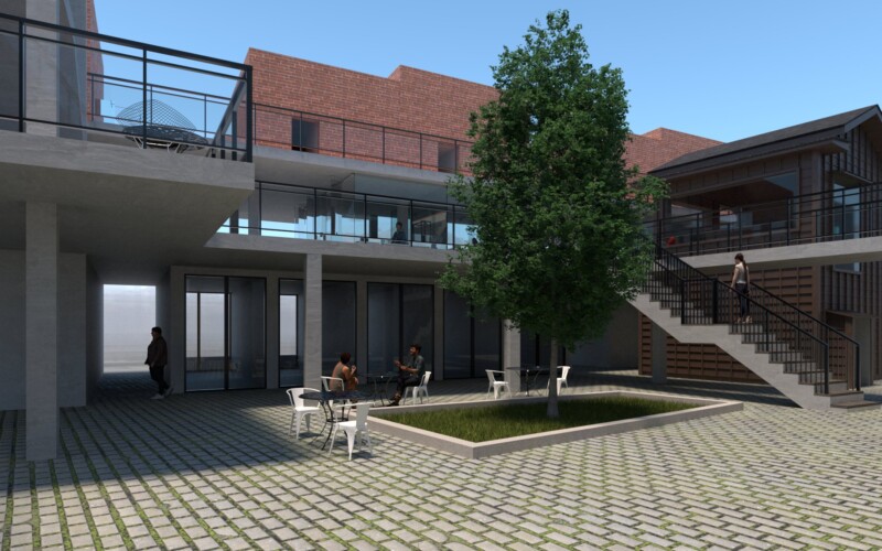 여기서 중요하게 여긴 것은 기존에 있는 상가는 유지하는 것이었다. 기존 상가는 방산시장에서 없어지면 안 되는 하나의 산업이기에 빼앗는 것보다는 공존하는 것이 중요하다고 생각하였다. 이에 따라 1층에는 기존의 상가로 구성하고 프레임을 통해 구조를 세워 2층에서 청년들이 창작물을 홍보하고 판매할 수 있는 공간을 제공하고 3층은 청년들이 살 수 있는 주거 공간들을 제공하였다.