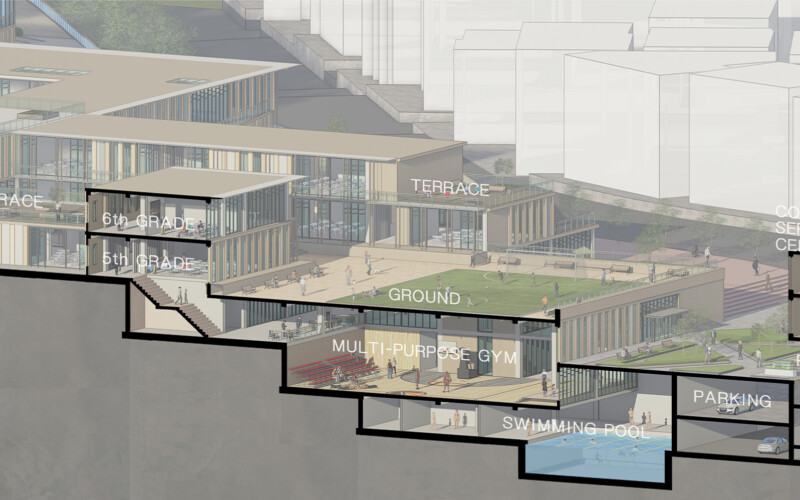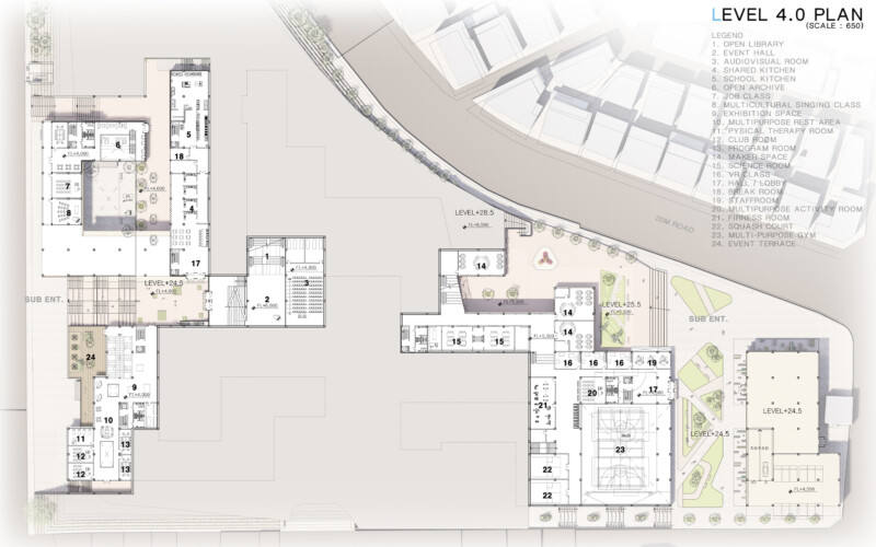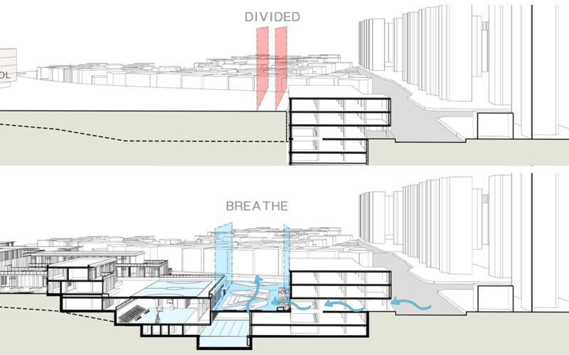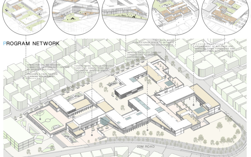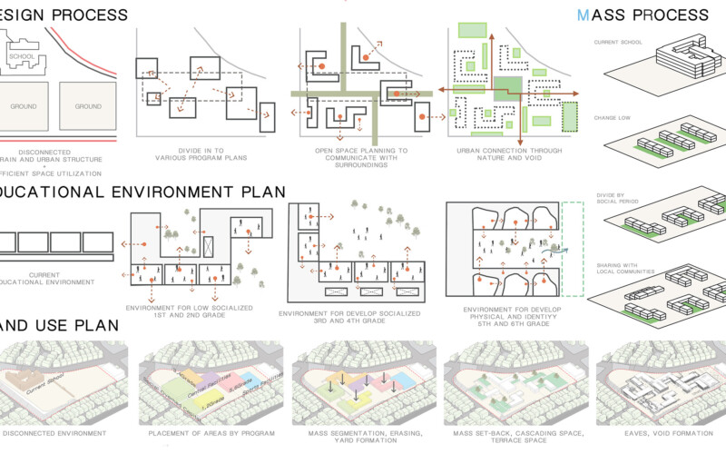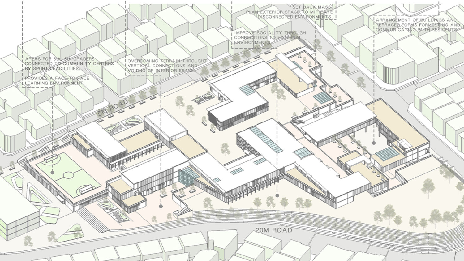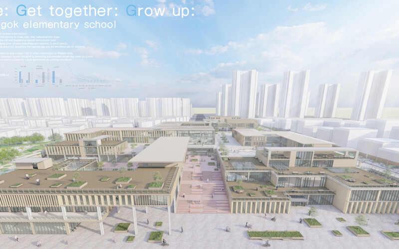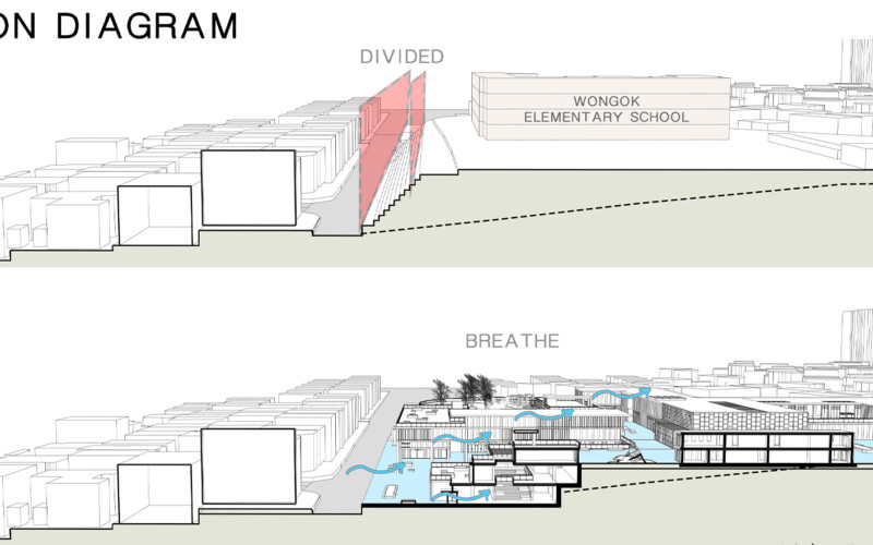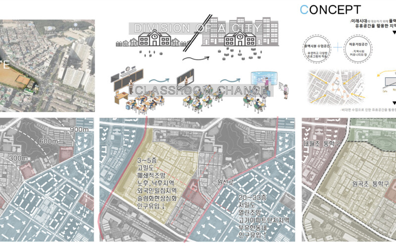 대지는 재건축 사업과 함께 원곡동 일대 도심재생의 큰 축의 역할이 필요하다. 단절된 지형 및 도시구조를 숨쉬게 하여 주민간의 이해와 공감대를 위한 공간을 형성하고, 유휴공간을 활용하여 국적, 계층에 따른 구분이 아닌 모든 아이가 통용될 수 있는 사회성 성장기에 따라 공간의 특성을 고려해 다양한 공간과 저층화를 계획하여 미래시대에 적합한 교육환경을 제공하고 인식개선과 기피현상을 해소하고자 한다.