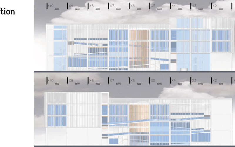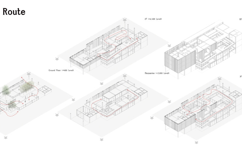 고객의 관람 루트는 루프를 따라 올라가는 형태를 취하고 있지만, 건물 전체적으로 투명성을 주고 열린 공간을 분산 배치하여 고객들이 해당 시설에서 머무는 시간을 늘릴 수 있기를 기대할 수 있으며, 판매자 입장에서 전시 방향에 대해 제한을 크게 주지 않는 평면을 구성을 줄 수 있으리라 생각한다.