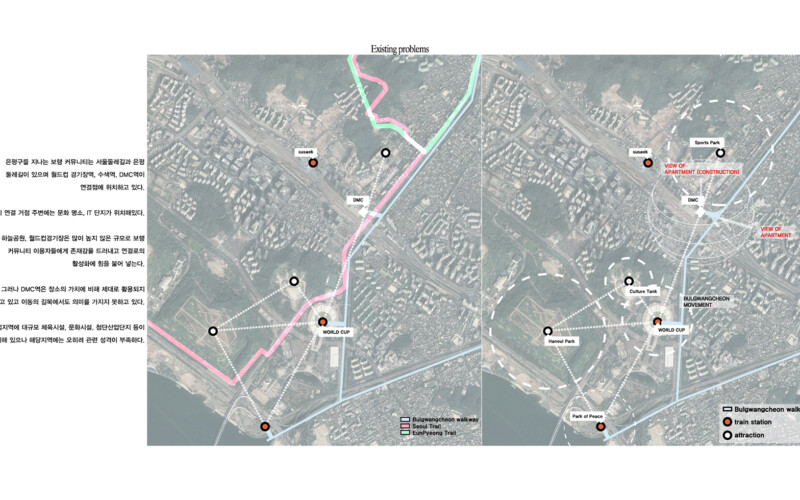 공원과 연결로의 중요성은 시간이 갈수록 커지고 있다. 이는 사람들을 업무지, 문화공간, 주거지 등으로 자유롭게 데려다 주며, 사람들이 열린 공간에 모일 수 있게 한다. DMC역 근처에는 대규모 체육시설, 문화비축기지, 첨단산업단지, 공원들이 있다. DMC역이 다양한 이용자의 일상생활과 관련된 공간으로 채워진다면 사람들을 끌어당기는 매력적인 공간이 될 수 있음과 동시에 연결로에서 펌프역할을 할 수 있을 것이다.