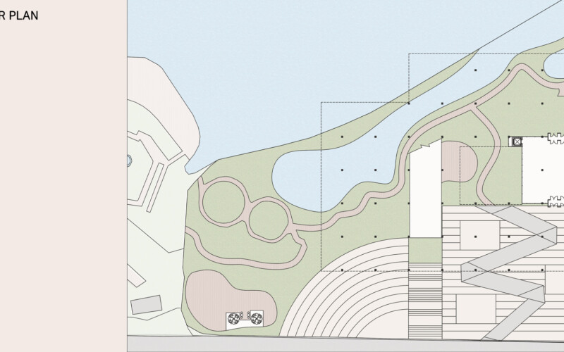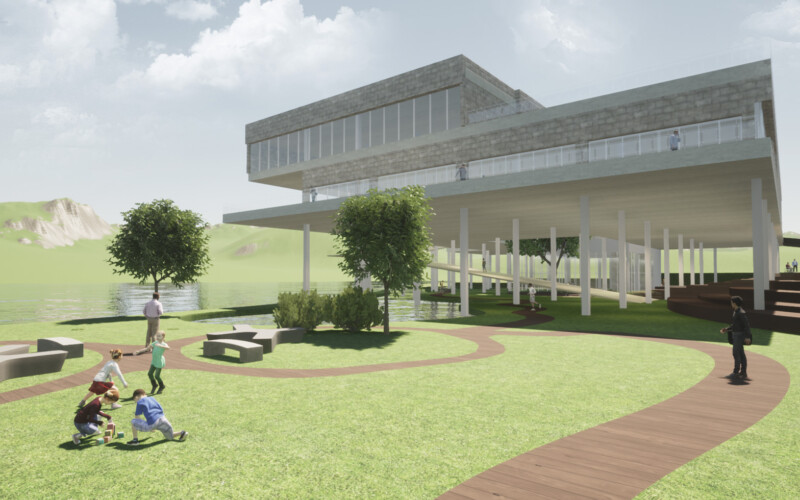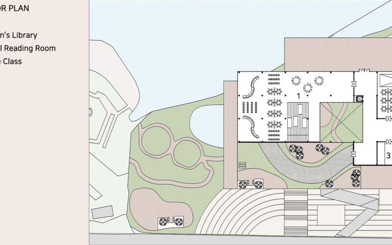 신정호와 도서관의 연계가 돋보이는 설계안이네요