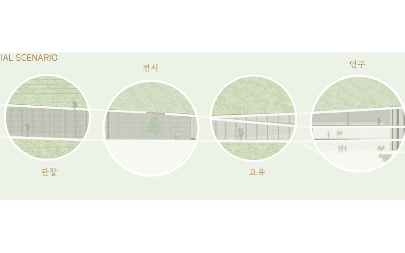 연구원과 방문객은 각 다른 층으로 진입하여 다양한 레벨을 수직, 수평적으로 경험하며 빠른, 느린 시퀀스를 통해 지속 가능한 관음도의 생태, 연구 활동이 이루어질 수 있도록 설계하였습니다.