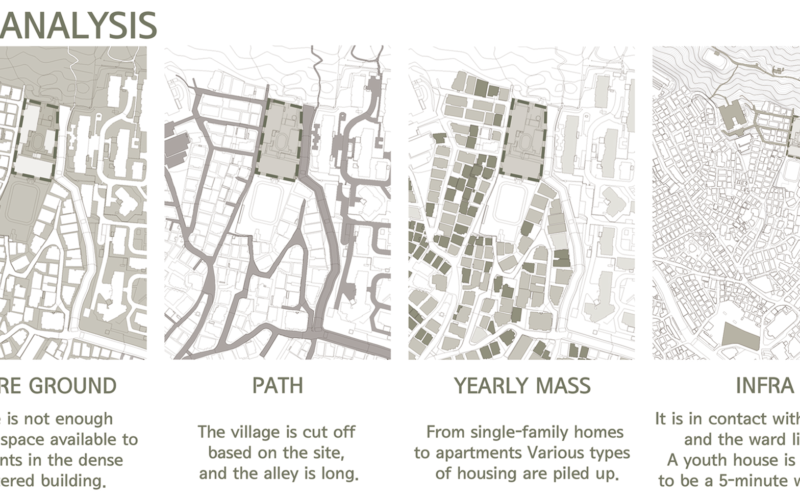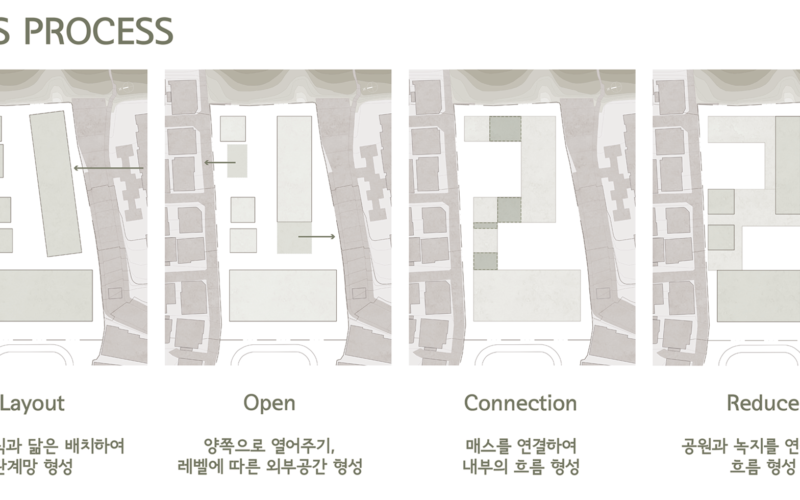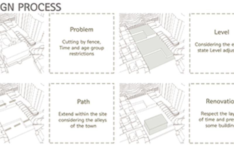 이를 기반으로 기존 은혜초등학교를 주민들이 사용할 수 있도록 개방하고, 세로로만 뻗은 길로 인해 단절된 양쪽 영역을 레벨을 통해 연결하고자 했다. 또한, 기존에 쌓인 건물들을 고려하여  리노베이션을 계획하였고, 불광근린 공원의 녹지흐름을 대상지 내로 유입하고자 하였다.