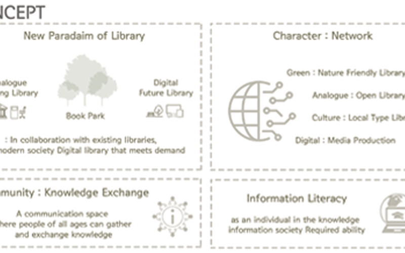 저출산으로 인한 폐교는 미래의 유휴공간이자 마을의 단절을 불러온다. 지역과 주민들에 맞추어진 공간으로 마을을 연결하고, 기존 도서관과 협업하여 지식을 매개로 소통하는 지역밀착형 디지털 도서관을 제안하고자 한다.