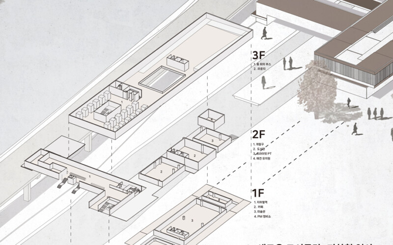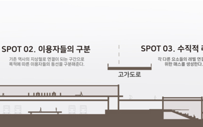 이동수단 중 지하철 역사는 도시 내 주요 지점을 연결하는 네트워크 역할을 하며, 도시의 흐름을 형성하고 새로운 지역 관계를 구축할 잠재력을 지닌 중요한 인프라이다. 이러한 배경에서 “미래 생활양식에 맞춰 이동수단의 플랫폼이 어떻게 대응할 것인가”라는 질문을 바탕으로, 교통과 이동권의 중심 허브로서 도시를 통합하고 새로운 도시 공간으로서의 역할을 제안한다.