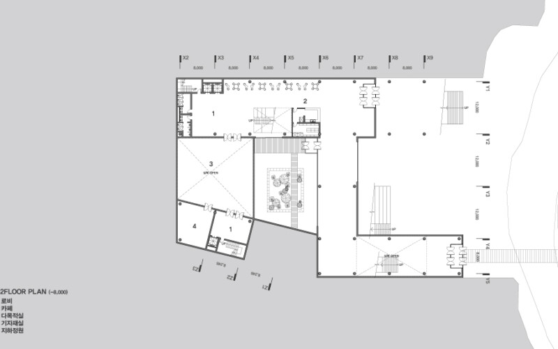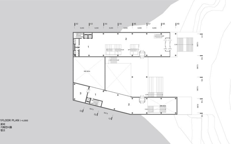 각 층에서도 이 공간을 바라볼 수 있으며 한강과 연결된 지하공간에서는 체험할 수 있도록 동선이 연결될 수 있도록 계획하였다.