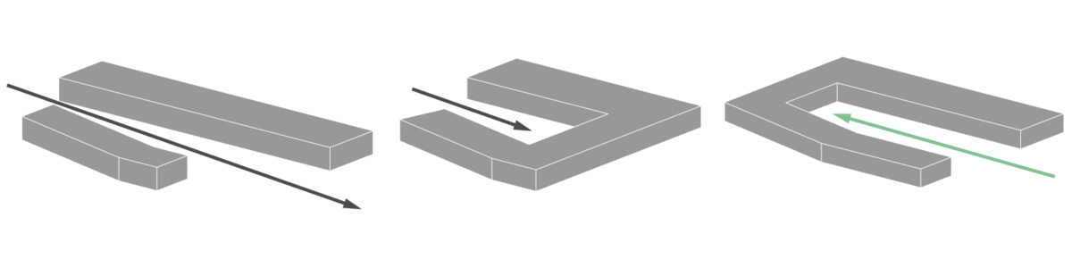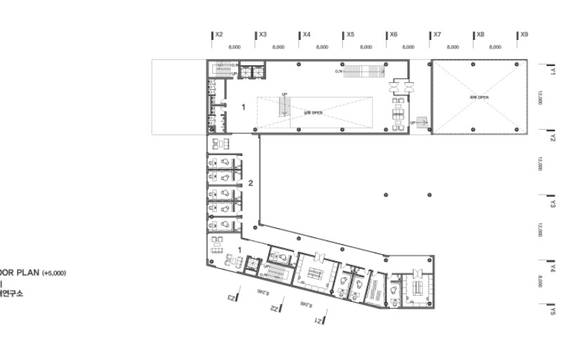 그 다음 도시 방향에는 도시의 요소를 받아주는 형태의 메스가 한강 방향에는 자연의 요소를 받아주는 형태의 메스를 계획하여 각 요소를 안정적으로 받아주면서 새로운 공간을 형성할 수 있도록 메스를 계획했다.