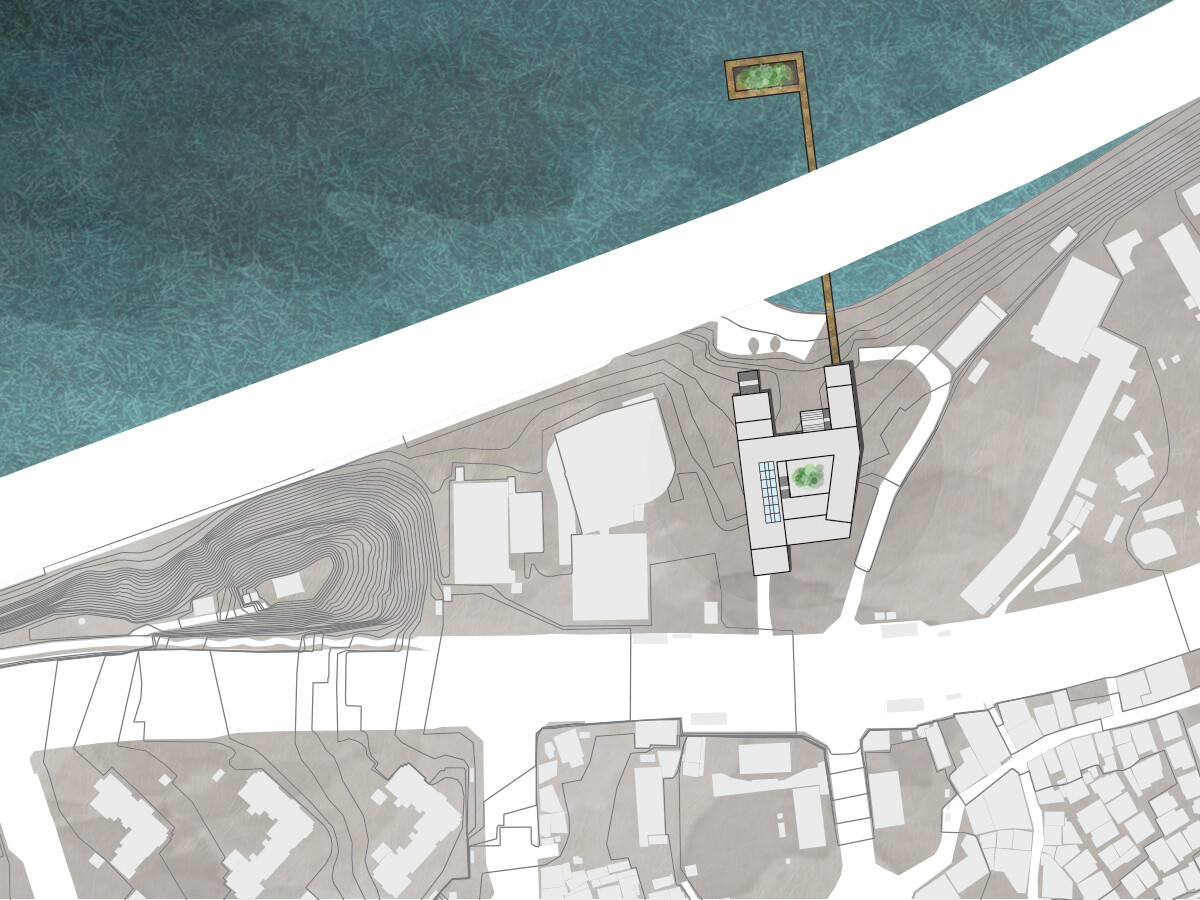 도시와 한강을 연결해주는 동선으로 계획 하였으며 중정형태의 지하 공간을 계획하여 자연과 도시의 요소들이 결합하는 공간을 계획했다.