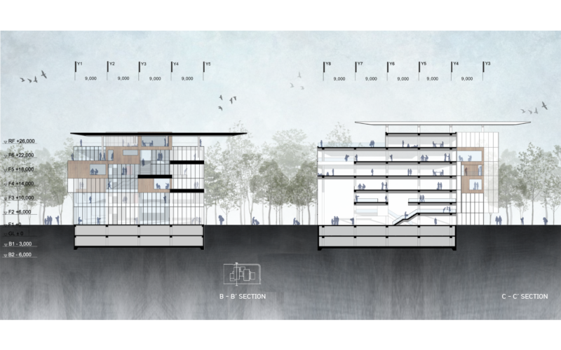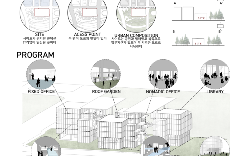 NAVER의 SMART STORE 사옥을 설계하여 업무기능과 상업기능이 복합된 새로운 오피스를 제안함으로 기존의 획일화된 오피스에서 벗어나 사용자에게 쾌적하고 활동적이며 자연 친화적인 업무환경을 제공하고자 하였다.