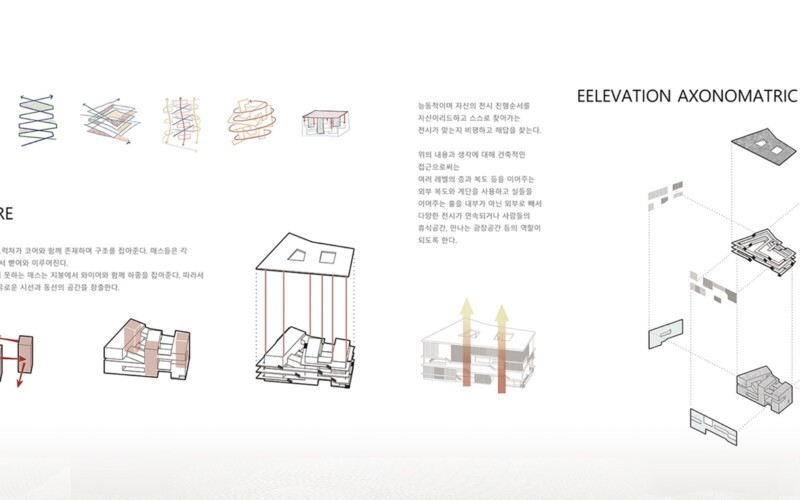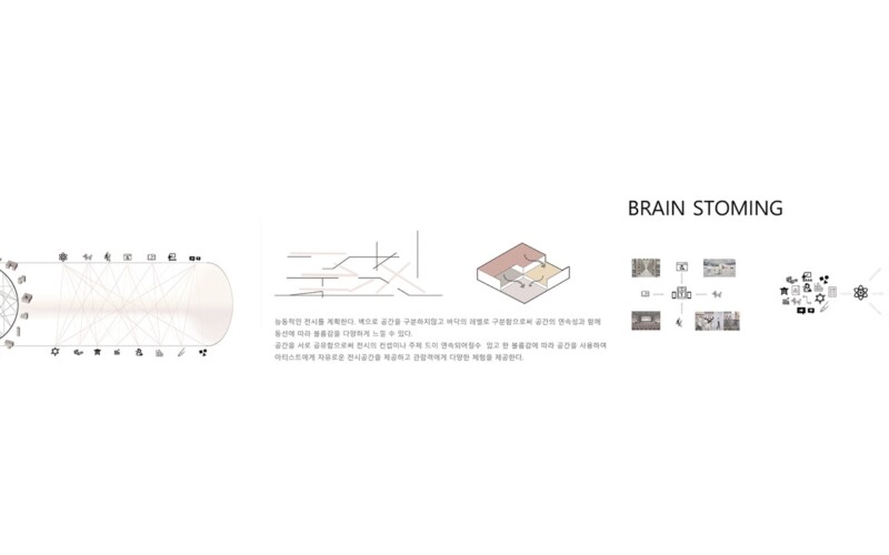갤러리의 프로그램은 이동하면서 관람하는 것이므로 매스를 일종의 동선으로 생각했다.