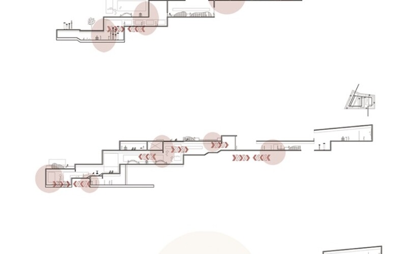 따라서 사람들이 홀에서 휴식을 취하거나 갤러리의 연장이 될 수 있으며, 두개의 큰 아트리움과 연결되어 수직적으로 연장된다.