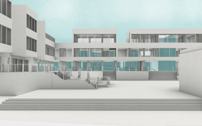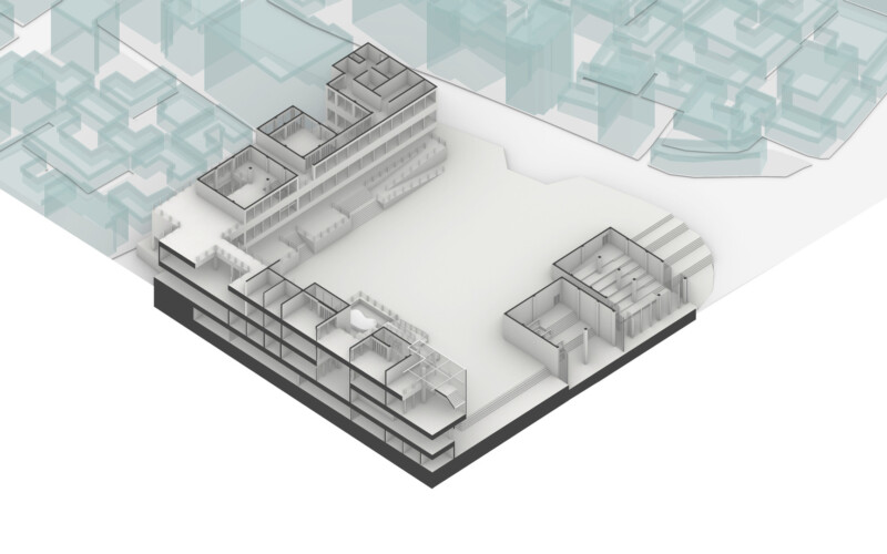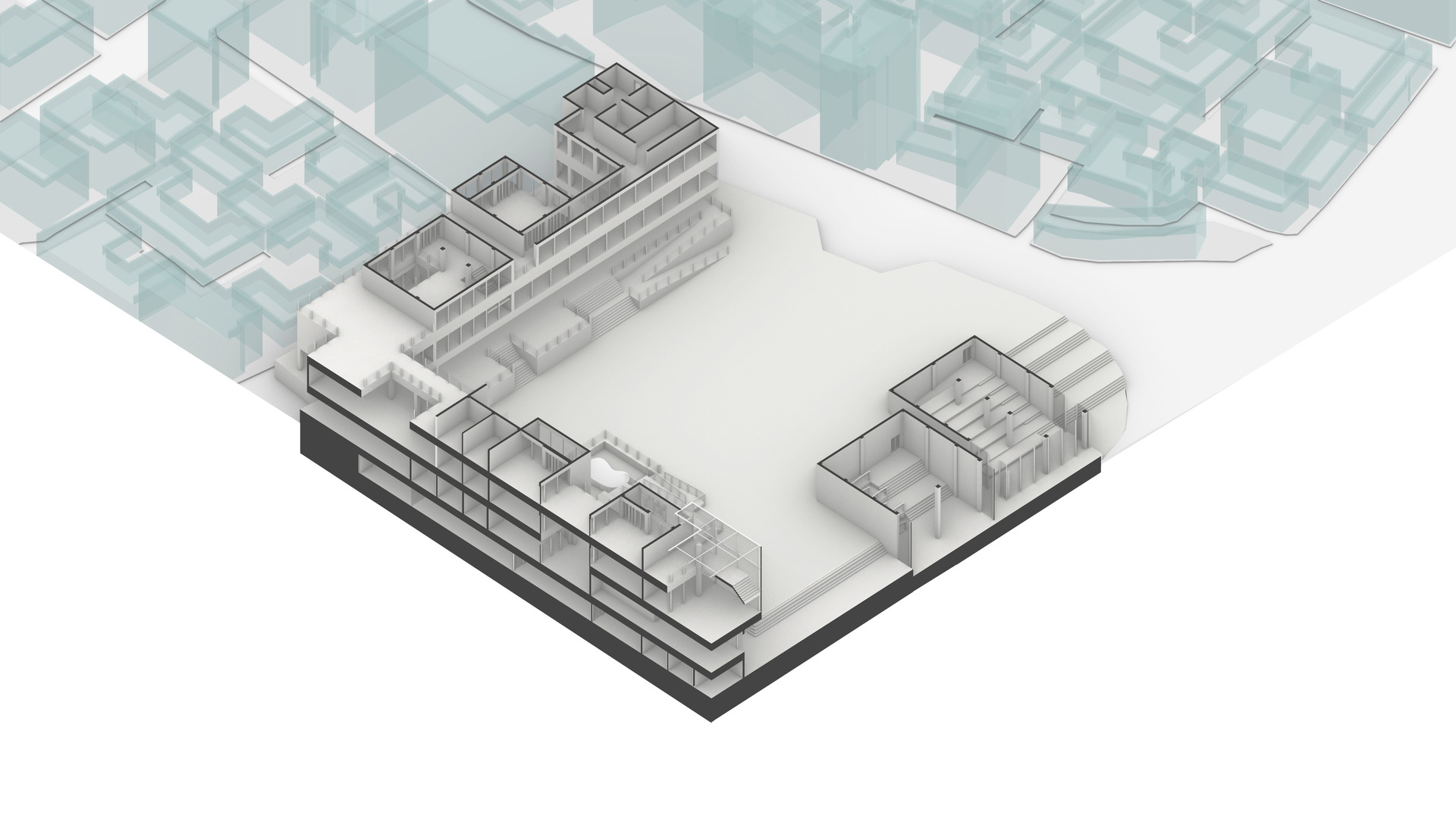 옥상층은 하나의 대형 매스를 분절하여 여러 개의 작은 볼륨으로 나누고, 그 사이 공간을 테라스와 휴식 공간으로 활용한다. 이는 학생들에게 기존의 운동장과는 다른 차원의 놀이와 탐색의 기회를 제공하며, 도시 맥락 속에서 학교를 열린 공공적 장소로 재위치시키는 역할을 한다. 나아가, 교실 중심의 학습 구조는 다양한 놀이와 체험 활동을 수용할 수 있는 유연한 공간으로 확장된다. 벽과 축대처럼 물리적 장벽으로 작용하던 요소들은 지역과 학교를 연결하는 복도이자 상호작용의 축으로 전환된다.