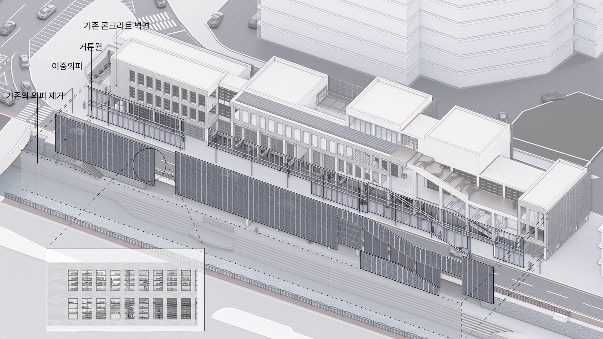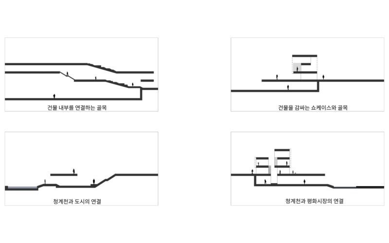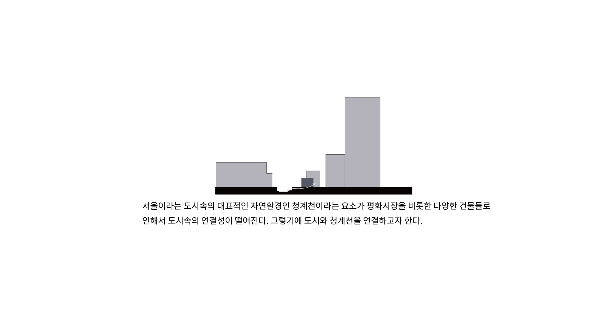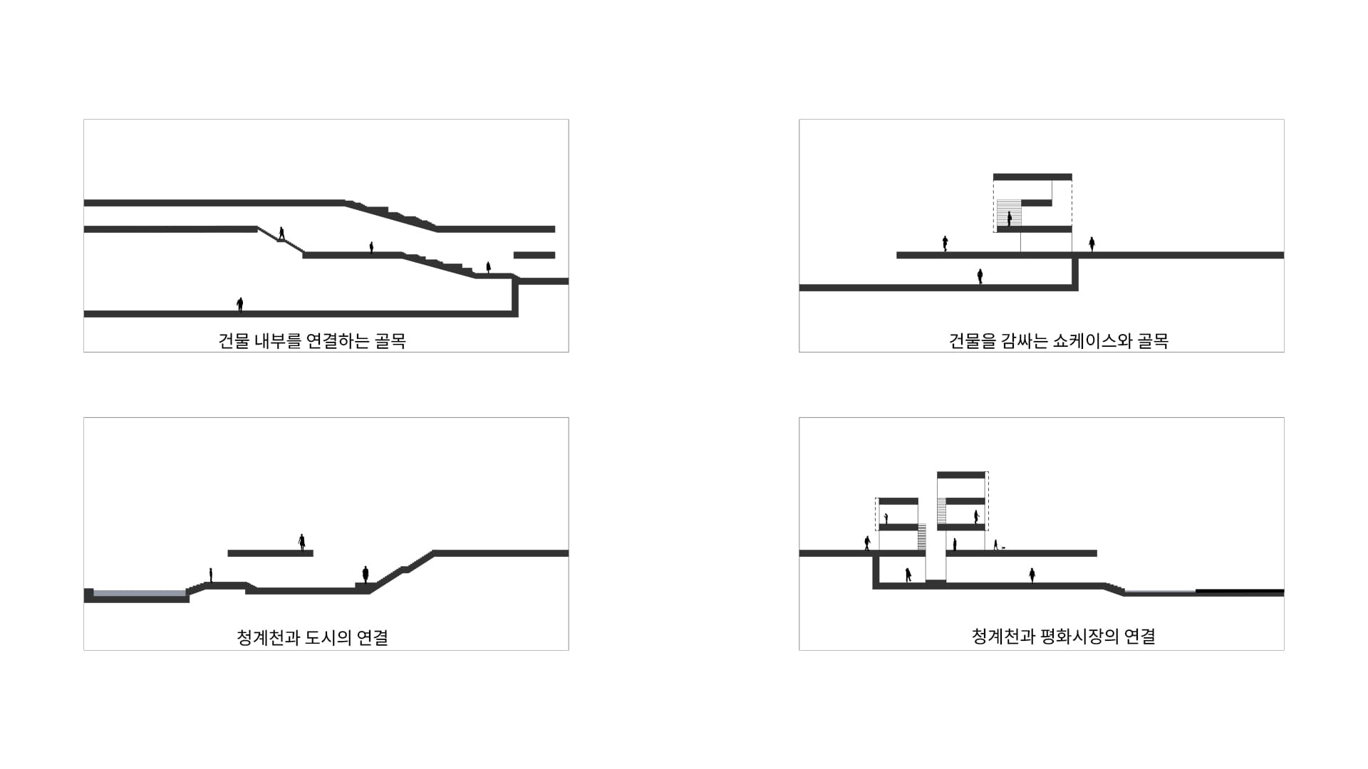 오늘날 시대적 변화 속에서 새로운 방식으로 장소를 되살려내는 것을 요구 하고자 한다. 청계천 헌책방 거리는 과거수많은 학생들과 시민들이 책을 찾고 발견하는 문화의 거리였다. 그러나 오늘날 책이라는 매체는 시대적 발전으로 인해 디지털 플랫폼 E-Book, 유튜브, OTT등 새로운 미디어에 의해 점점 쇠퇴하는 상황이다. 그러나 여전히 책이라는 매체는 시대적 사건, 사회적 변화에 따라 새롭게 조명될 가능성을 지니고 있다. 한강작가의 노벨문학상 수상과 같은 사건 직후 헌책방 거리를 비롯한 다양한 서점, 책방등에 한강 작가의 책을 찾는 사람들이 늘어 난 것 처럼 말이다. 이렇게 책은 시대적 맥락에 따라 재해석되고 소비될 수 있는 잠재력을 지니고 있다. 그렇기에 헌책방거리가 위치해 있는 평화시장의 일부를 증·개축 하여, 과거 헌책방의 기억하면서, 오늘날 다양한 문화적 이벤트가 발생할 수 있는 공간으로 변화 시키고자 한다. 단순히 책을 읽고 사는 공간에서 전시·관람·체험등 시민들이 쉽게 참여 할 수 있는 공간으로 건물 자체가 하나의 전시공간이 되도록 하고자 한다.