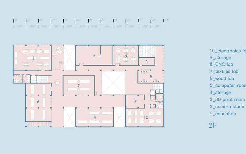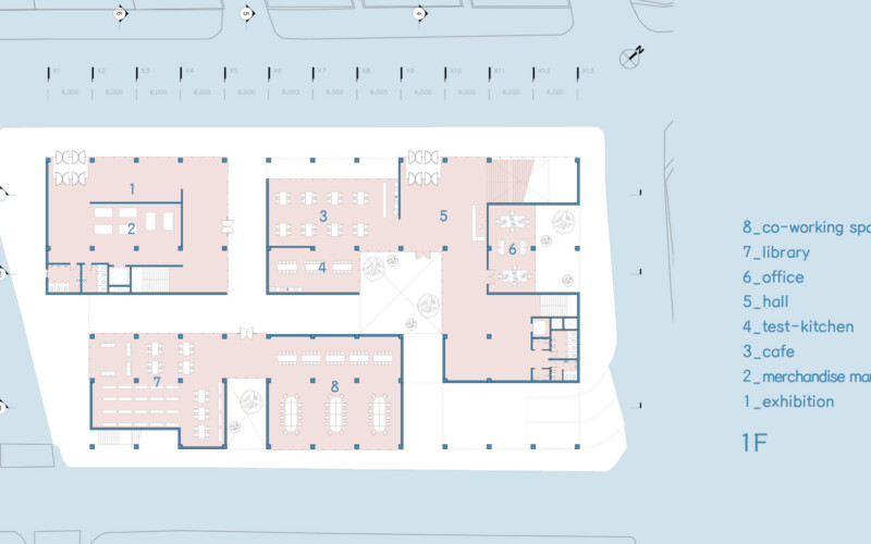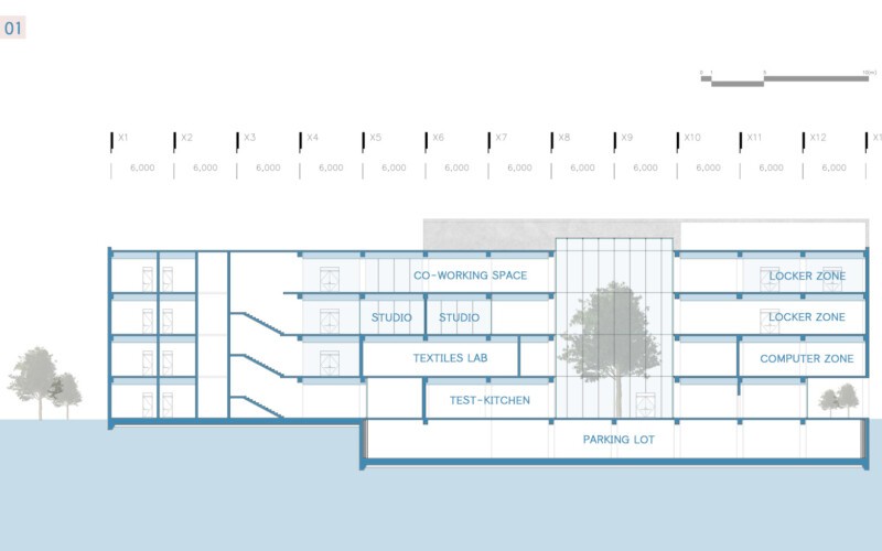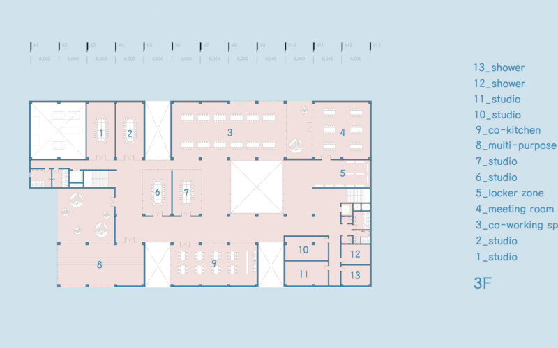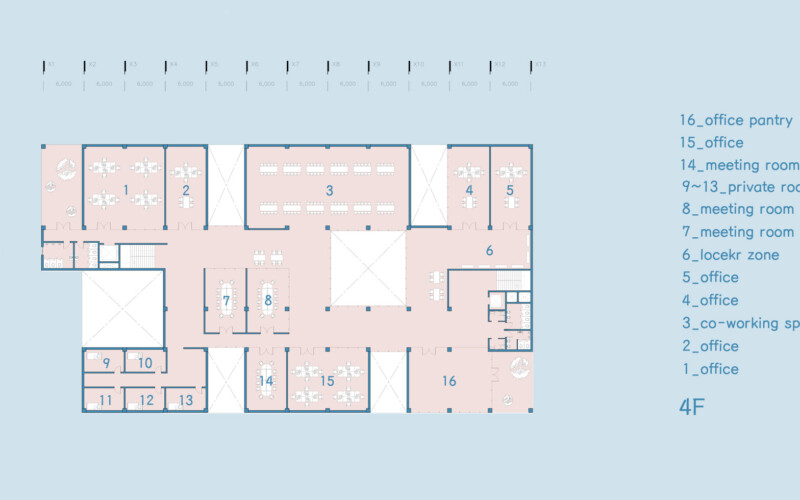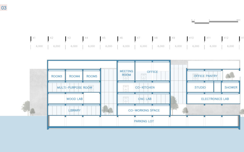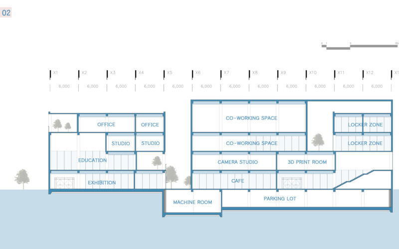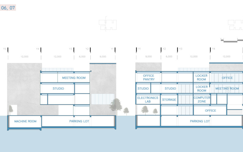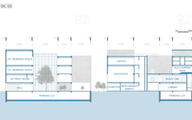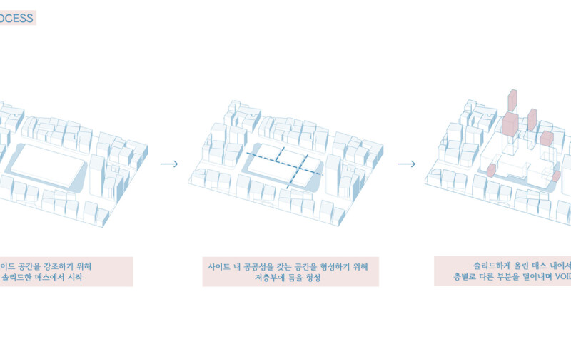 내부 공간에서 이루어지는 모든 활동은 서로 직접적인 영향을 주지는 않지만 투영되는 시선을 통해 간접적으로 교류해 프라이빗한 영역을 지키며 동시에 퍼블릭한 공간을 가질 수 있다.