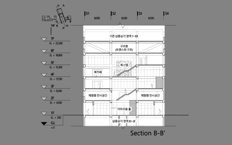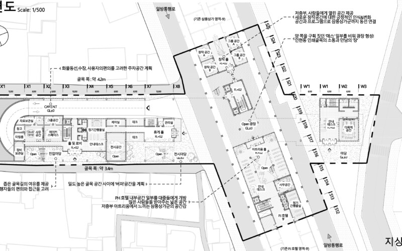 삼풍상가에 의해 단절되었던 인쇄골목을 도시와 대면할 수 있도록 열어주었고, 사람들의 만남과 커뮤니케이션 등의 다양한 행태가 이루어질 수 있도록 의도하였습니다.
