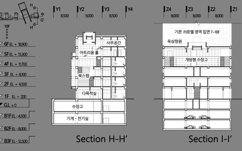 저는 이번 프로젝트를 하면서 건축은 대지가 가진 장소성을 고려해야 한다는 것에 목표를 두었고, 인현동 인쇄골목이라는 배경 속에서 현대 도시의 무자비한 개발 모습과, 도심산업이라는 오래된 것이 가지는 가치에 대해 이야기 하면서 이 땅의 미래 모습은 큰 맥락에서 시작하는 것이 아닌 일부 또는 부분을 포함한 계획에서부터 하나하나 바꿔나가는 것이 어떤가 하는 계획을 제안합니다.