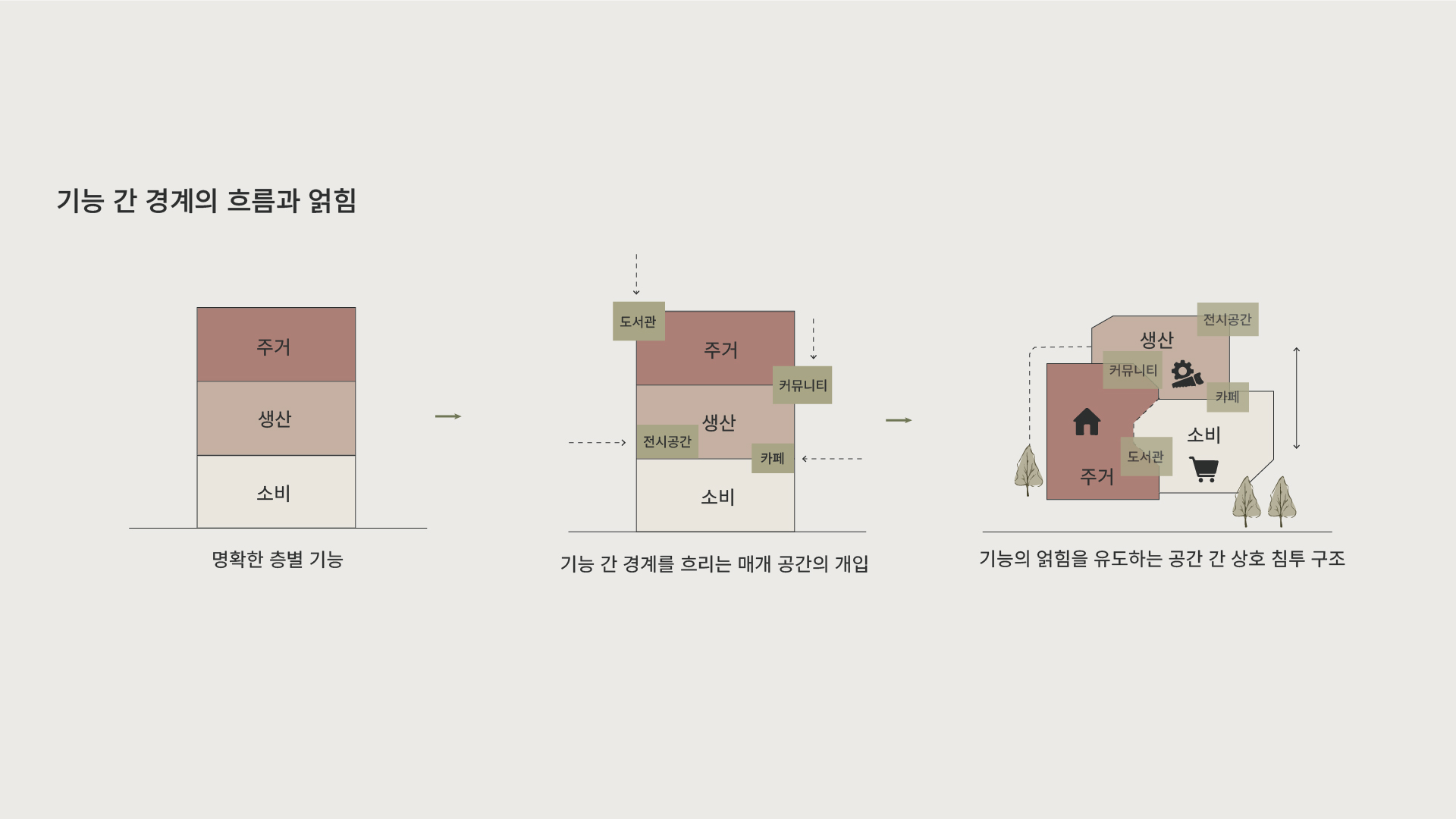 생산, 소비, 주거라는 도시의 기본 기능이 서로 얽혀 공존하는 새로운 삶의 방식과 공간 구조
