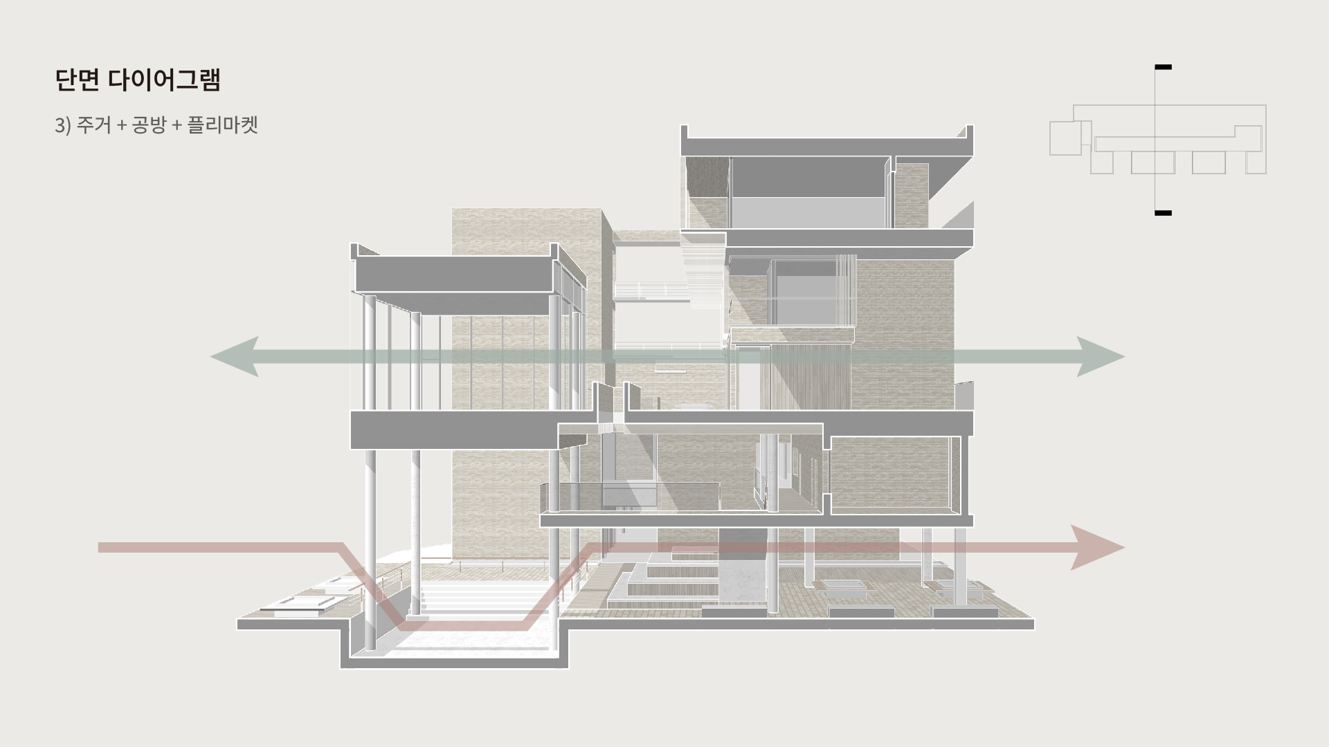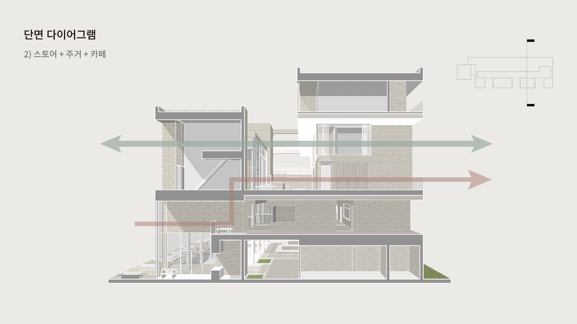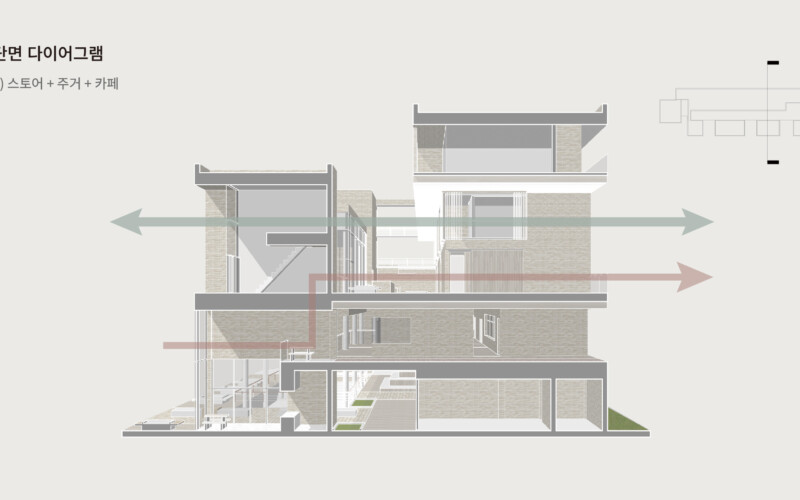 제가 세 가지 기능을 섞어야 한다고 생각한 이유는 실제 우리의 도시 생활이 기능별로 분리되어 있지 않기 때문입니다. 카페에서는 커피를 마시기도 하고 일을 하기도 하며, 집 근처에서는 전시를 관람할 수도 있습니다. 같은 공간에서 작업과 휴식을 동시에 즐기기도 하지요. 이처럼 우리의 일상은 경계가 모호합니다. 저는 건축 역시 이러한 유연성을 가져야 한다고 생각했고, 이에 따라 기능을 중첩시키는 방식으로 공간을 풀어냈습니다.