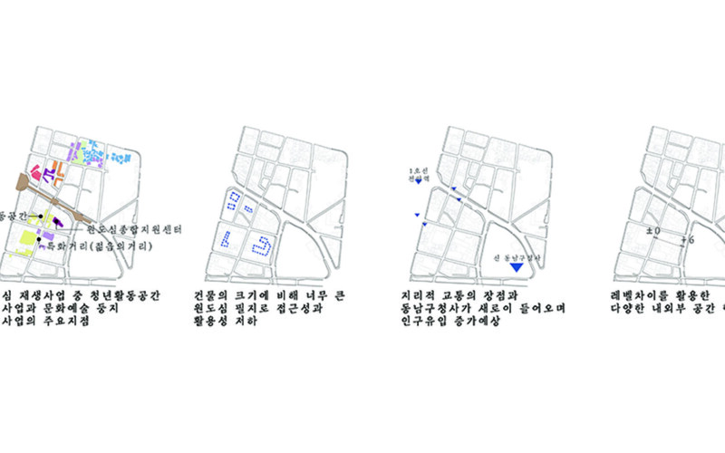 이를 통해 청년관련 프로그램들의 중심이 되어주는 시설과 환경을 제공하고 더불어 원도심지역의 활성화에도 도움이 될 수 있는 시설이 필요로 한다는 결과를 도출했다.