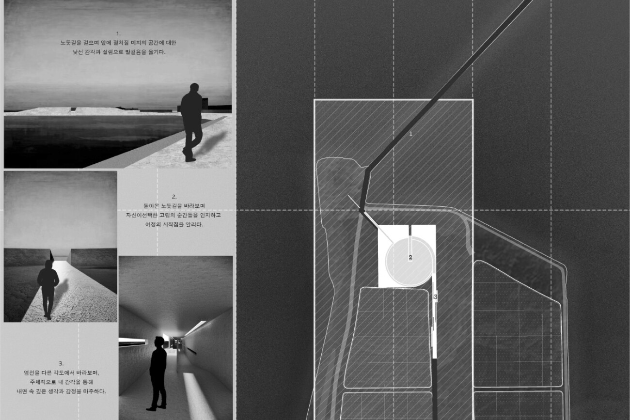 노둣길: 관람객은 노둣길을 걸으며 미지의 공간에 대한 설렘과 낯선 감각을 경험합니다. 이 길은 화도의 섬과 육지 간의 단절을 상징하며, 고립의 순간을 인지하게 합니다.