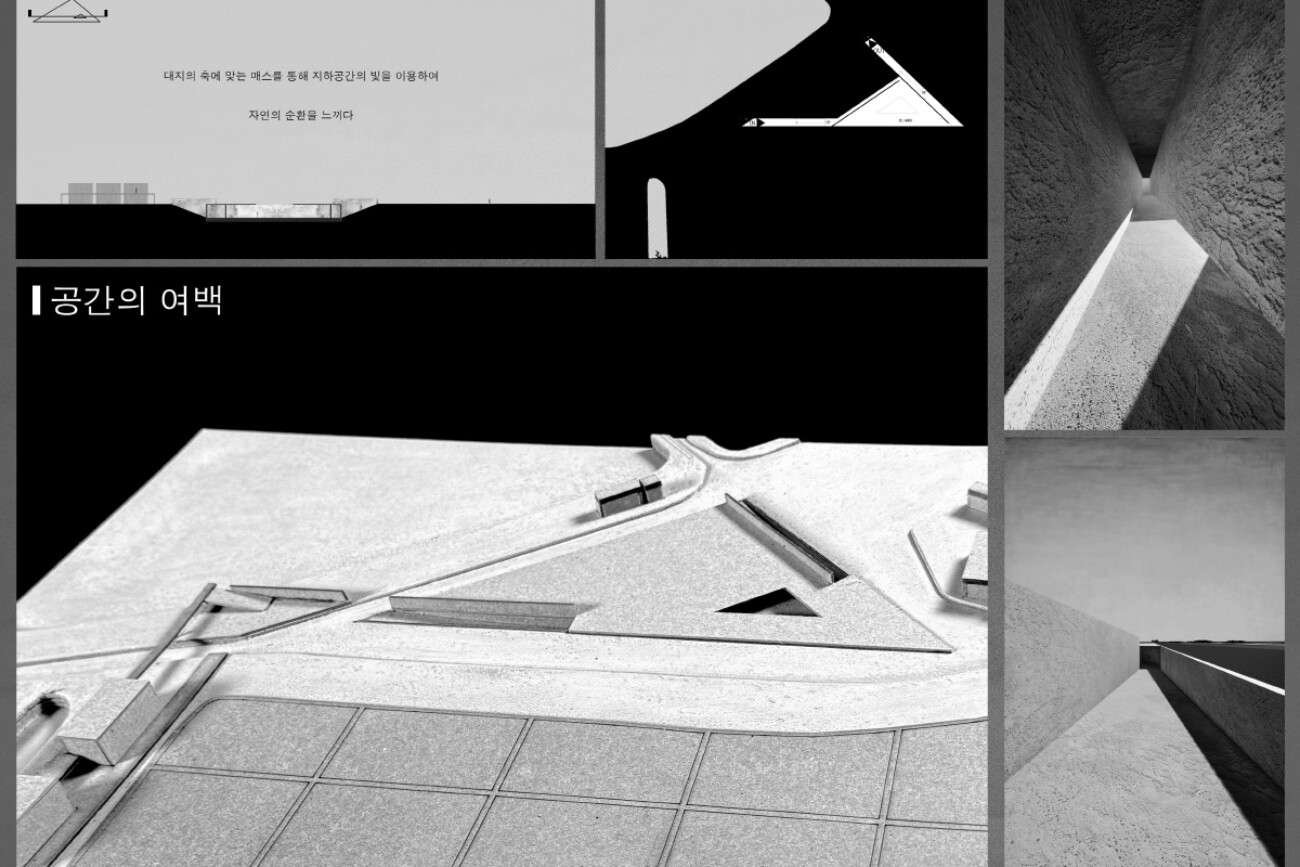 녹지공간: 지하의 넓은 공간에서 들어오는 빛과 바람 소리를 통해 자연의 순환을 느끼며, 영원함을 바라보는 시간을 가집니다.